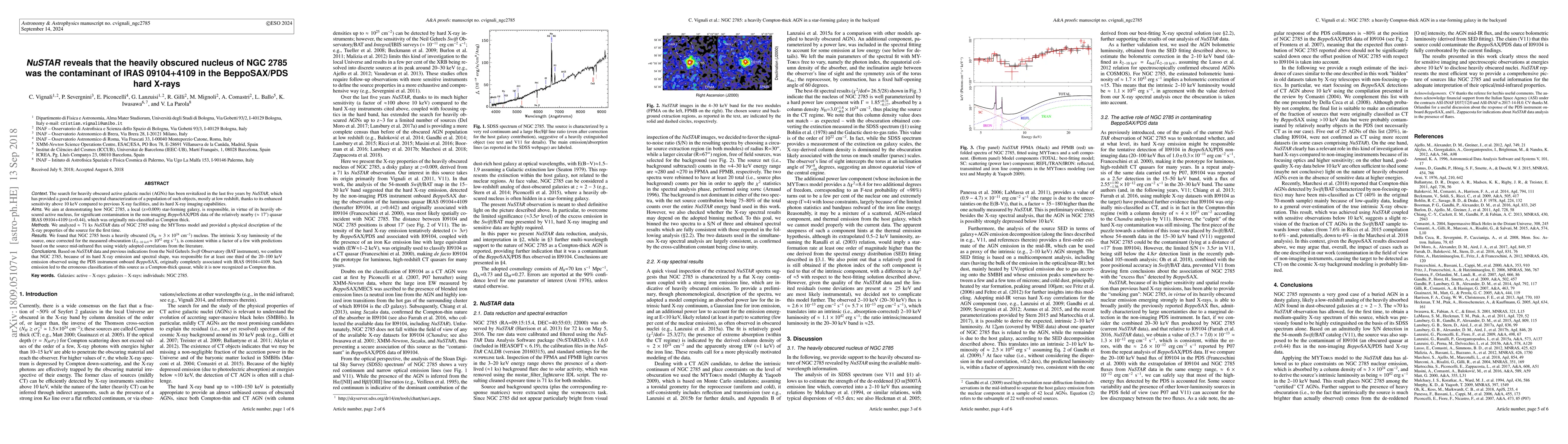 The search for heavily obscured active galactic nuclei (AGNs) has been revitalized in the last five years by NuSTAR, which has provided a good census and spectral characterization of a population of such objects, mostly at low redshift, thanks to its enhanced sensitivity above 10 keV compared to previous X-ray facilities, and its hard X-ray imaging capabilities. We aim at demonstrating how NGC2785, a local (z=0.009) star-forming galaxy, is responsible, in virtue of its heavily obscured active nucleus, for significant contamination in the non-imaging BeppoSAX/PDS data of the relatively nearby (~17 arcmin) quasar IRAS 09104+4109 (z=0.44), which was originally mis-classified as Compton thick. We analyzed ~71 ks NuSTAR data of NGC2785 using the MYTorus model and provided a physical description of the X-ray properties of the source for the first time. We found that NGC2785 hosts a heavily obscured (NH~3*10^{24} cm^{-2}) nucleus. The intrinsic X-ray luminosity of the source, once corrected for the measured obscuration (L(2-10 keV)~10^{42} erg/s), is consistent within a factor of a few with predictions based on the source mid-infrared flux using widely adopted correlations from the literature. Based on NuSTAR data and previous indications from the Neil Gehrels Swift Observatory (BAT instrument), we confirm that NGC2785, because of its hard X-ray emission and spectral shape, was responsible for at least one third of the 20-100 keV emission observed using the PDS instrument onboard BeppoSAX, originally completely associated with IRAS 09104+4109. Such emission led to the erroneous classification of this source as a Compton-thick quasar, while it is now recognized as Compton thin.