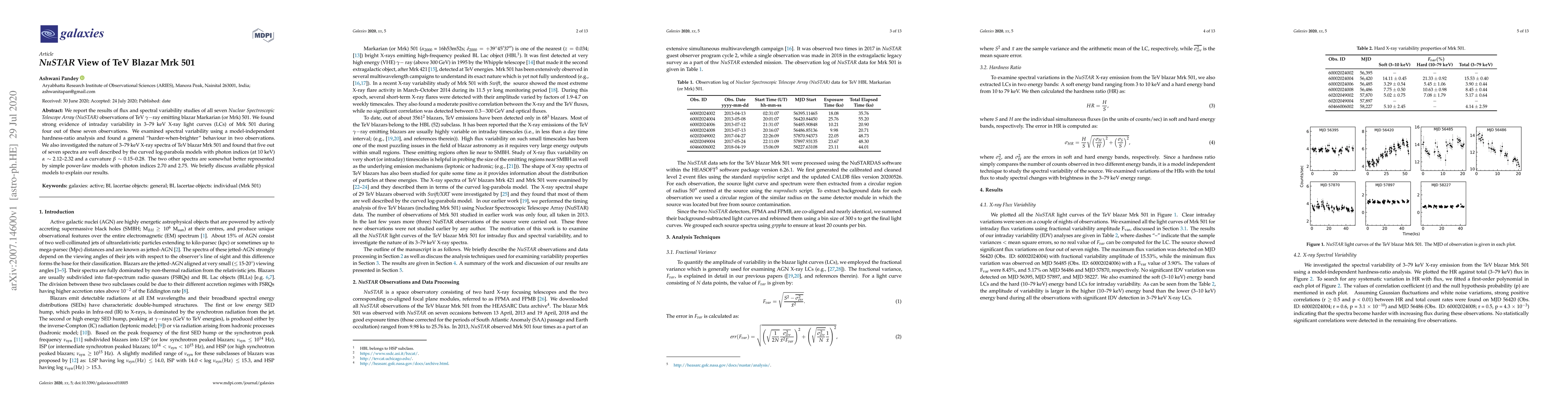 This paper reports on NuSTAR observations of the TeV blazar Mrk 501, revealing strong intraday X-ray variability and a "harder-when-brighter" spectral trend in some observations. The X-ray spectra are predominantly fitted by curved log-parabola models, with a few spectra better described by simple power-law models.