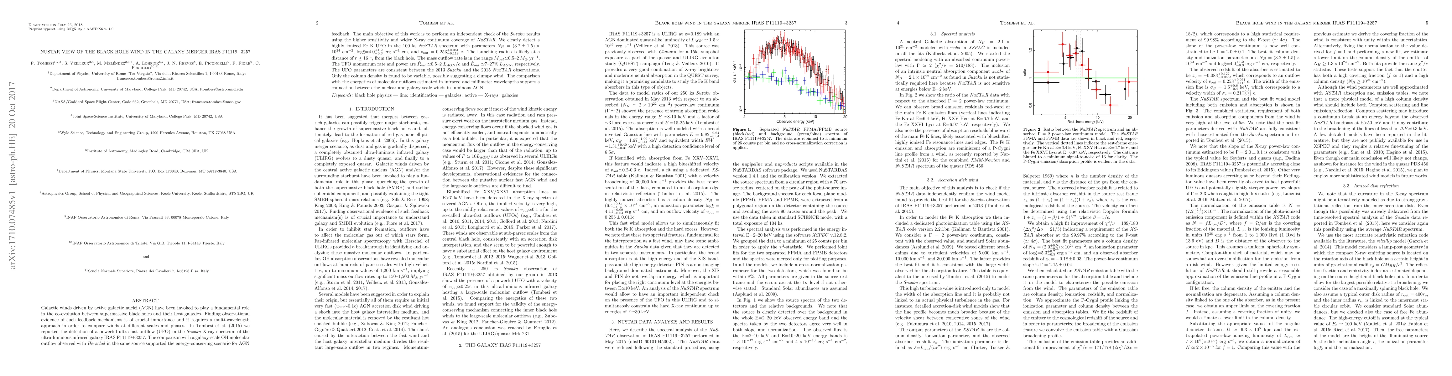 The paper presents an analysis of X-ray observations from NuSTAR of the galaxy IRAS F11119+3257, confirming the presence of a powerful black hole wind. This wind, detected as an ultra-fast outflow (UFO) of highly ionized iron, has a mass outflow rate of 0.5-2 $M_{odot}$ yr$^{-1}$, and carries momentum and energy of 0.5-2 $L_{AGN}/c$ and 7-27% $L_{AGN}$ respectively. The findings support the energy-conserving scenario for AGN feedback, consistent with earlier Suzaku observations, suggesting a link between nuclear and galaxy-scale winds in luminous AGN.