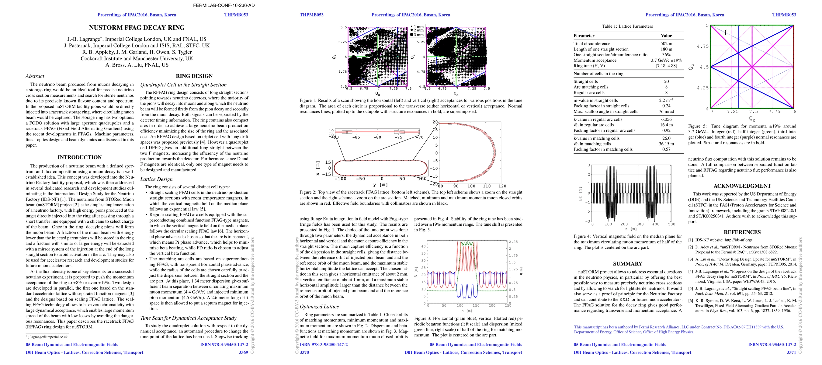 The nuSTORM FFAG Decay Ring proposes a neutrino beam from a racetrack storage ring for precise neutrino measurements, utilizing FFAG technology for improved beam dynamics. The paper details machine parameters, linear optics design, and beam dynamics for both FODO and FFAG configurations.