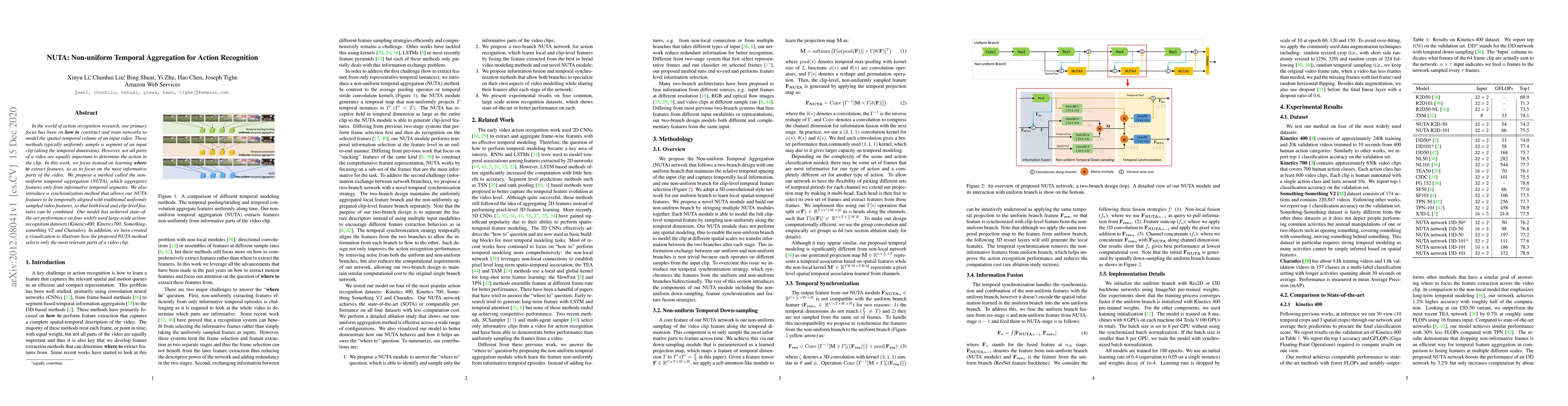 The paper introduces NUTA, a non-uniform temporal aggregation method for action recognition that focuses on extracting features from the most informative parts of a video, achieving state-of-the-art performance on four large-scale datasets. This method also includes a synchronization technique to align NUTA features with uniformly sampled features for combined use.