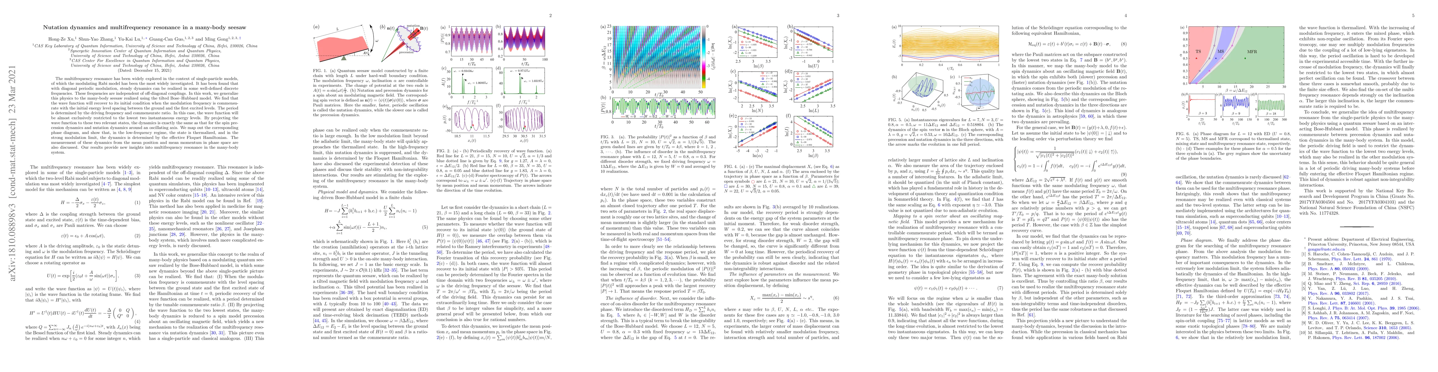 This paper explores multifrequency resonance in a many-body seesaw system using the tilted Bose-Hubbard model, showing that the wave function recovers to its initial condition under specific modulation frequencies. The dynamics resemble nutation dynamics and are determined by the driving frequency and commensurate ratio.