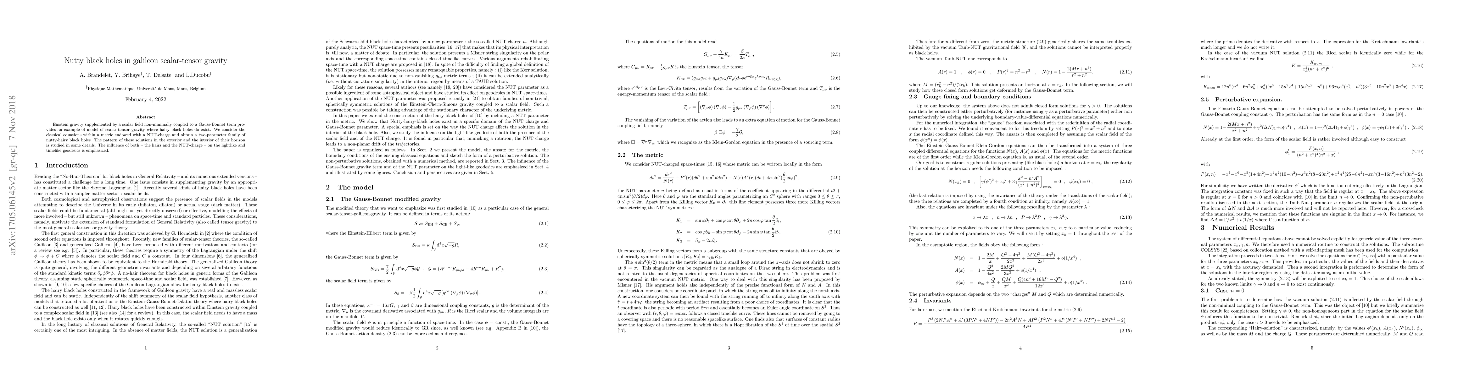Einstein gravity supplemented by a scalar field non-minimally coupled to a Gauss-Bonnet term provides an example of model of scalar-tensor gravity where hairy black holes do exist. We consider the classical equations within a metric endowed with a NUT-charge and obtain a two-parameter family of nutty-hairy black holes. The pattern of these solutions in the exterior and the interior of their horizon is studied in some details. The influence of both -- the hairs and the NUT-charge -- on the lightlike and timelike geodesics is emphasized.