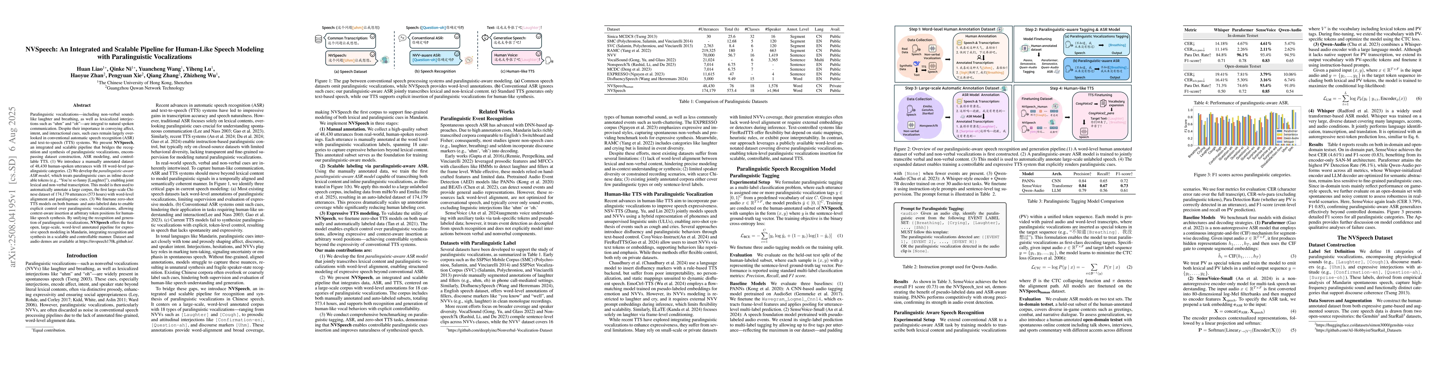 Paralinguistic vocalizations-including non-verbal sounds like laughter and breathing, as well as lexicalized interjections such as "uhm" and "oh"-are integral to natural spoken communication. Despite their importance in conveying affect, intent, and interactional cues, such cues remain largely overlooked in conventional automatic speech recognition (ASR) and text-to-speech (TTS) systems. We present NVSpeech, an integrated and scalable pipeline that bridges the recognition and synthesis of paralinguistic vocalizations, encompassing dataset construction, ASR modeling, and controllable TTS. (1) We introduce a manually annotated dataset of 48,430 human-spoken utterances with 18 word-level paralinguistic categories. (2) We develop the paralinguistic-aware ASR model, which treats paralinguistic cues as inline decodable tokens (e.g., "You're so funny [Laughter]"), enabling joint lexical and non-verbal transcription. This model is then used to automatically annotate a large corpus, the first large-scale Chinese dataset of 174,179 utterances (573 hours) with word-level alignment and paralingustic cues. (3) We finetune zero-shot TTS models on both human- and auto-labeled data to enable explicit control over paralinguistic vocalizations, allowing context-aware insertion at arbitrary token positions for human-like speech synthesis. By unifying the recognition and generation of paralinguistic vocalizations, NVSpeech offers the first open, large-scale, word-level annotated pipeline for expressive speech modeling in Mandarin, integrating recognition and synthesis in a scalable and controllable manner. Dataset and audio demos are available at https://nvspeech170k.github.io/.