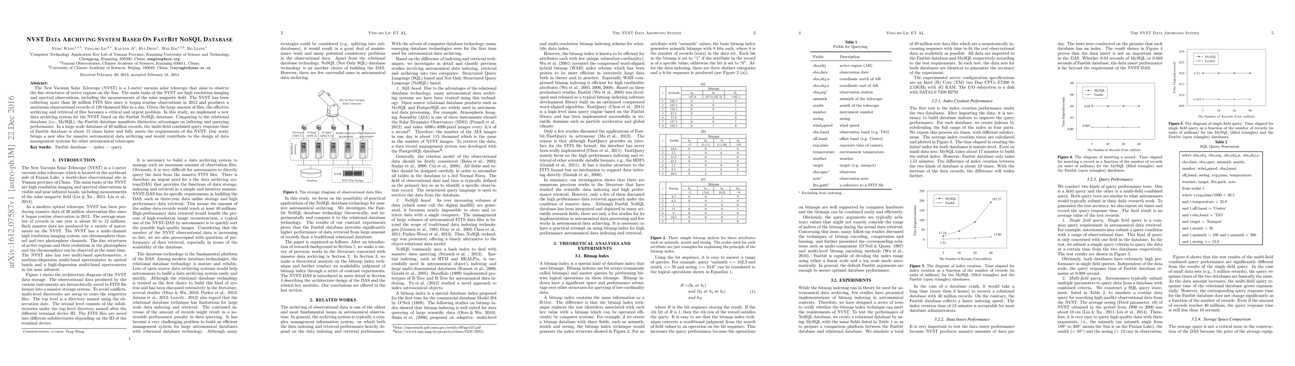 What makes this work novel is the use of NoSQL databases and bitmap indexes for large-scale astronomy archives