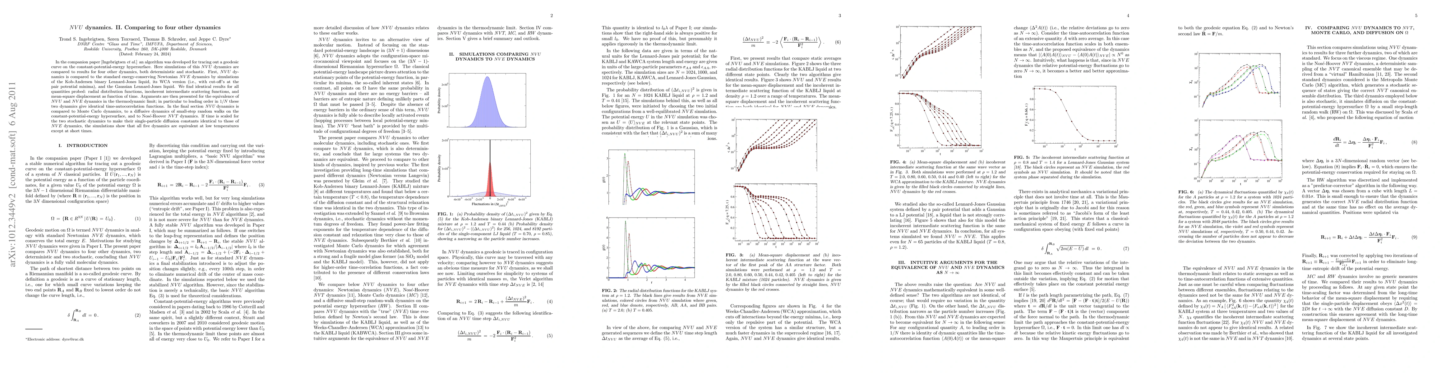 Research compares NVU dynamics to four other dynamics, finding equivalence in energy-conserving Newtonian NVE dynamics, Monte Carlo dynamics, diffusive dynamics, and Nose-Hoover NVT dynamics at low temperatures.