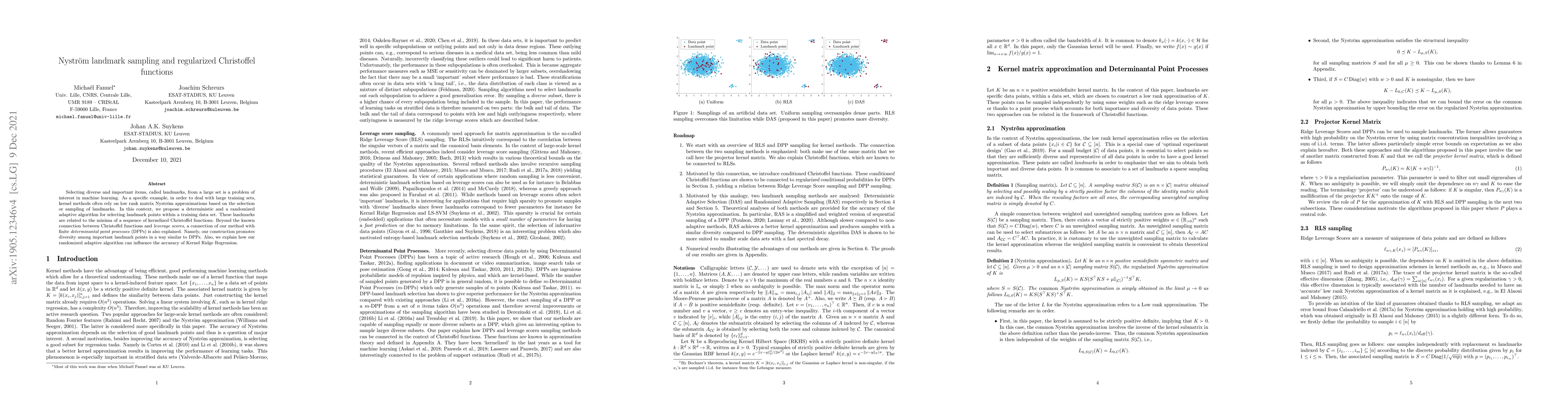 This paper proposes algorithms for selecting diverse landmark points in machine learning models to improve their performance, particularly in kernel methods and Kernel Ridge Regression. The landmarks are related to minima of Christoffel functions and promote diversity among important points similar to finite determinantal point processes.