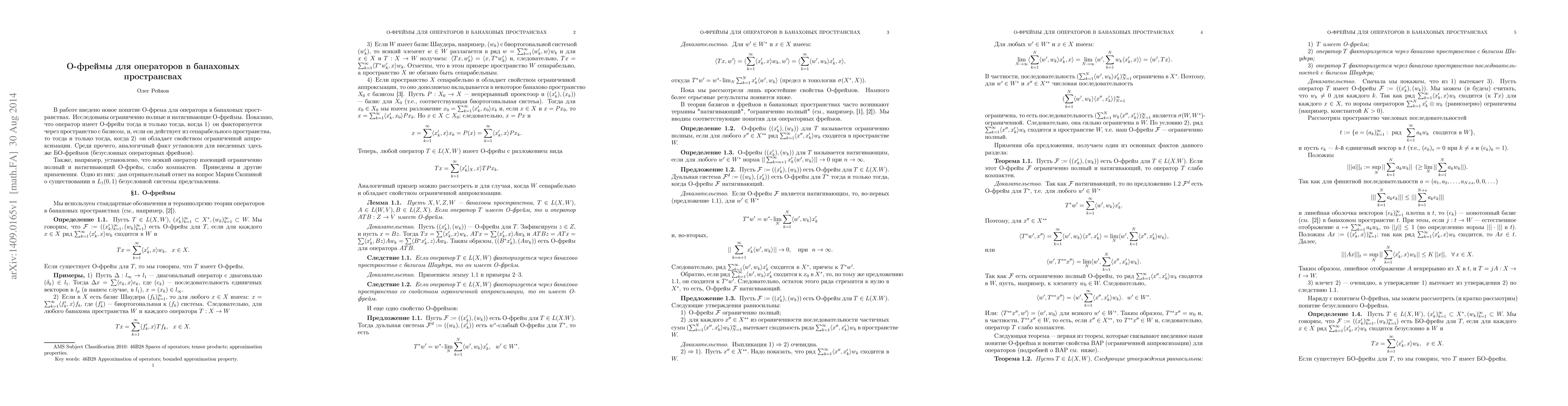 These notes are formal. Here, in this abstract, not in the note, we should say that all that is in the text was done, essentially, by Aleksander Pe{\l}czy\'nski. BUT: Anyhow, a new notion of an O-frame for an operator is introduced. For the operators in separable spaces, it is shown that a operator has an O-frame iff it has the BAP iff it can be factored through a Banach space with a basis. Applications are given. However, looking around, I'd say that, e.g., a notion of a Banach frame (and also O-frame) was implicitely introduced by great Aleksander Pe{\l}czy\'nski.