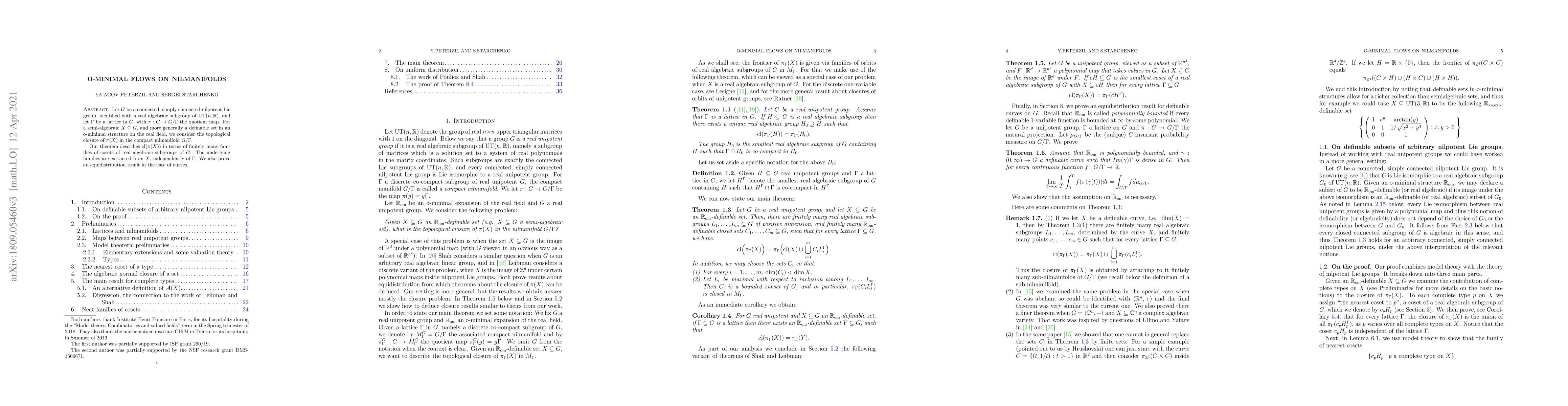 This research paper studies the topological closure of a semi-algebraic set on a nilmanifold in terms of families of cosets of real algebraic subgroups, with implications for equidistribution results.