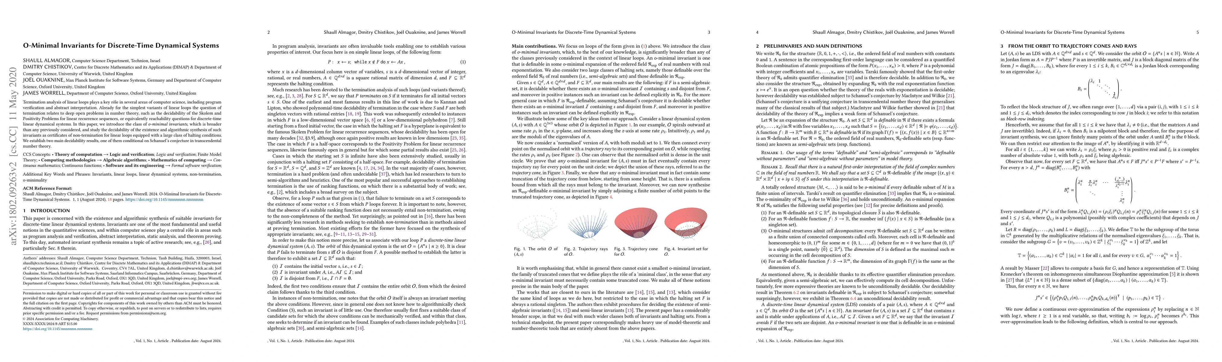 This paper introduces a new class of o-minimal invariants for analyzing termination in linear loops, extending beyond previous methods. It establishes decidability results for the existence and synthesis of these invariants, with one result contingent on Schanuel's conjecture in transcendental number theory.