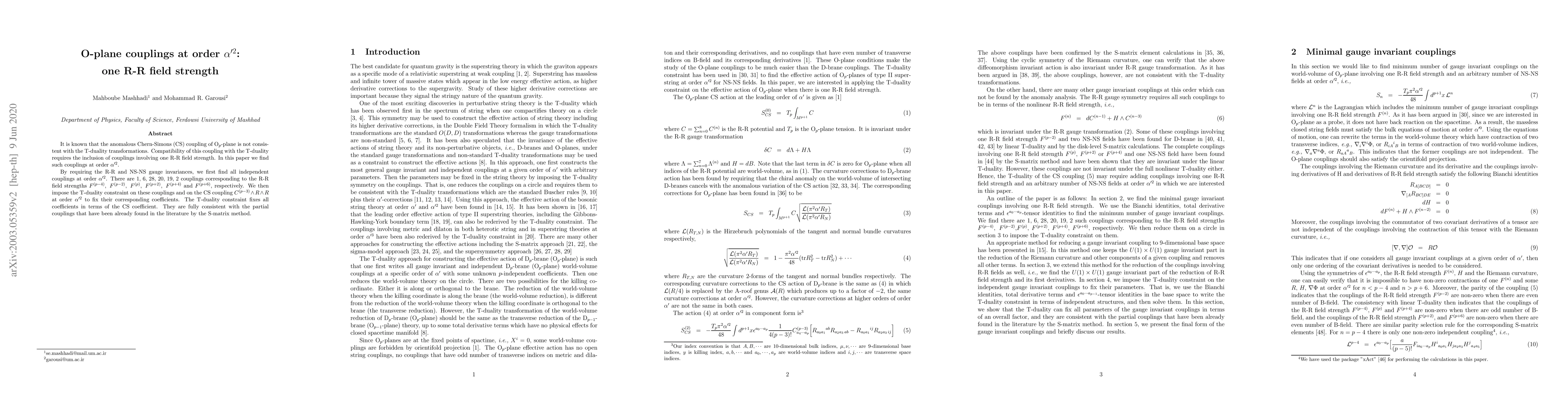 This paper identifies and determines the couplings involving one R-R field strength at order $\alpha'^2$ to resolve the inconsistency of anomalous Chern-Simons couplings in O-planes with T-duality transformations. The study finds 64 independent couplings and fixes their coefficients using T-duality constraints, aligning with previously discovered partial couplings.