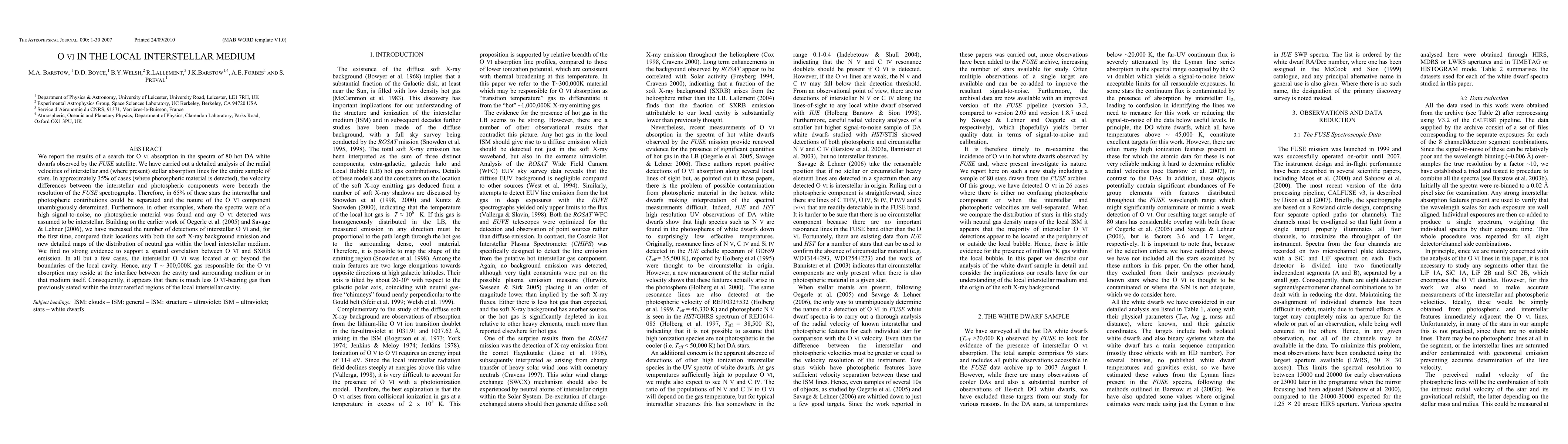 We report the results of a search for O VI absorption in the spectra of 80 hot DA white dwarfs observed by the FUSE satellite. We have carried out a detailed analysis of the radial velocities of interstellar and (where present) stellar absorption lines for the entire sample of stars. In approximately 35% of cases (where photospheric material is detected), the velocity differences between the interstellar and photospheric components were beneath the resolution of the FUSE spectrographs. Therefore, in 65% of these stars the interstellar and photospheric contributions could be separated and the nature of the O VI component unambiguously determined. Furthermore, in other examples, where the spectra were of a high signal-to-noise, no photospheric material was found and any O VI detected was assumed to be interstellar. Building on the earlier work of Oegerle et al. (2005) and Savage & Lehner (2006), we have increased the number of detections of interstellar O VI and, for the first time, compared their locations with both the soft X-ray background emission and new detailed maps of the distribution of neutral gas within the local interstellar medium. We find no strong evidence to support a spatial correlation between O VI and SXRB emission. In all but a few cases, the interstellar O VI was located at or beyond the boundaries of the local cavity. Hence, any T ~ 300,000K gas responsible for the O VI absorption may reside at the interface between the cavity and surrounding medium or in that medium itself. Consequently, it appears that there is much less O VI-bearing gas than previously stated within the inner rarefied regions of the local interstellar cavity.