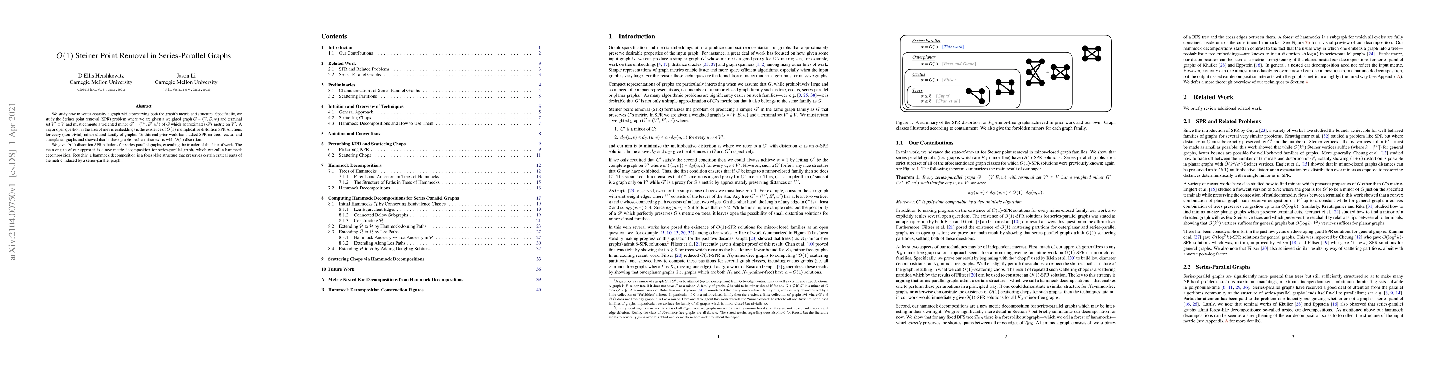 This paper presents $O(1)$ distortion solutions for the Steiner point removal problem in series-parallel graphs, extending previous results for minor-closed families. The key innovation is a novel hammock decomposition that preserves the metric structure of series-parallel graphs.