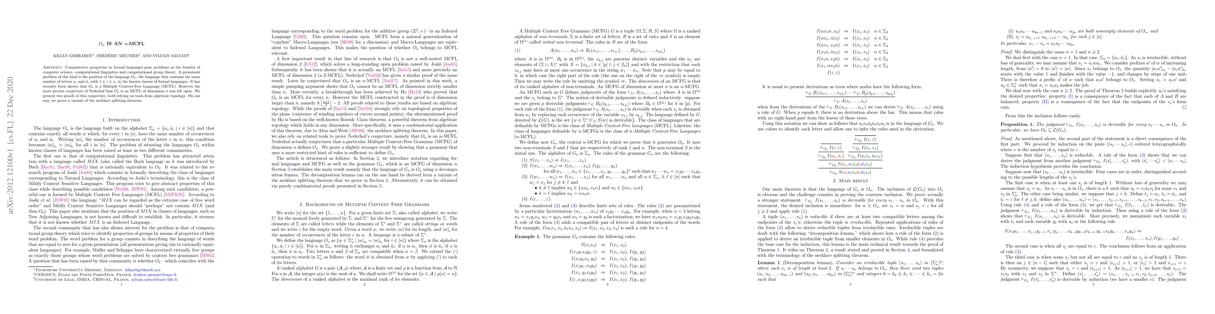 Commutative properties in formal languages pose problems at the frontier of computer science, computational linguistics and computational group theory. A prominent problem of this kind is the position of the language $O_n$, the language that contains the same number of letters $a_i$ and $\bar a_i$ with $1\leq i\leq n$, in the known classes of formal languages. It has recently been shown that $O_n$ is a Multiple Context-Free Language (MCFL). However the more precise conjecture of Nederhof that $O_n$ is an MCFL of dimension $n$ was left open. We present two proofs of this conjecture, both relying on tools from algebraic topology. On our way, we prove a variant of the necklace splitting theorem.