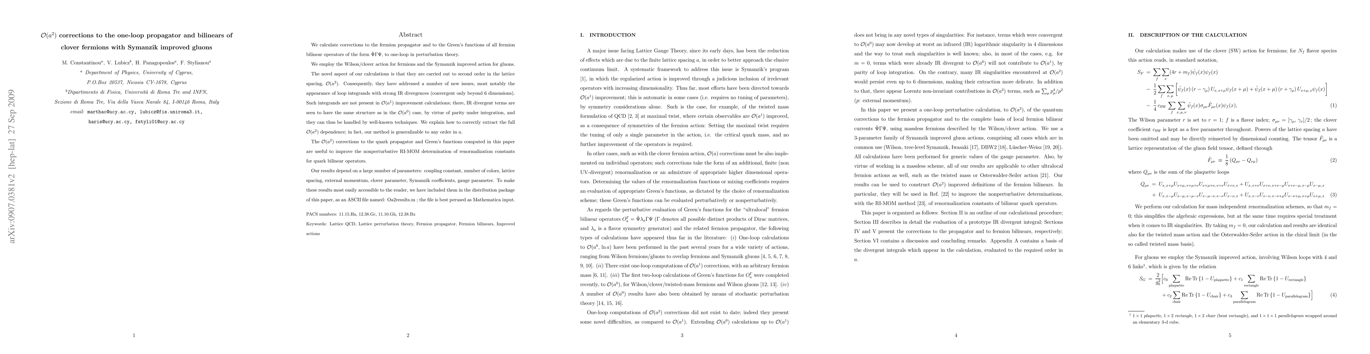 We calculate corrections to the fermion propagator and to the Green's functions of all fermion bilinear operators of the form $\bar\Psi \Gamma \Psi$, to one-loop in perturbation theory. We employ the Wilson/clover action for fermions and a family of Symanzik improved actions for gluons. The novel aspect of our calculations is that they are carried out to second order in the lattice spacing, $O(a^2)$. Consequently, they have addressed a number of new issues, most notably the appearance of loop integrands with strong IR divergences (convergent only beyond 6 dimensions). Such integrands are not present in $O(a^1)$ improvement calculations; there, IR divergent terms are seen to have the same structure as in the $O(a^0)$ case, by virtue of parity under integration, and they can thus be handled by well-known techniques. We explain how to correctly extract the full $O(a^2)$ dependence; in fact, our method is generalizable to any order in $a$. The $O(a^2)$ corrections to the quark propagator and Green's functions computed in this paper are useful to improve the nonperturbative RI-MOM determination of renormalization constants for quark bilinear operators. Our results depend on a large number of parameters: coupling constant, number of colors, lattice spacing, external momentum, clover parameter, Symanzik coefficients, gauge parameter. To make these results most easily accessible to the reader, we have included them in the distribution package of this paper, as an ASCII file named: Oa2results.m ; the file is best perused as Mathematica input.