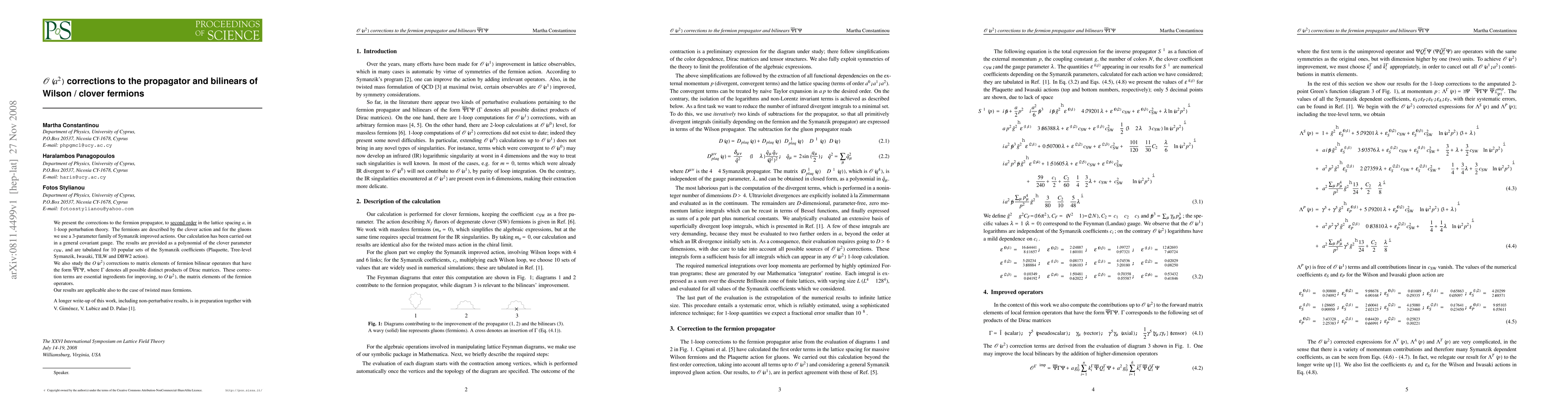 We present the corrections to the fermion propagator, to second order in the lattice spacing, O(a^2), in 1-loop perturbation theory. The fermions are described by the clover action and for the gluons we use a 3-parameter family of Symanzik improved actions. Our calculation has been carried out in a general covariant gauge. The results are provided as a polynomial of the clover parameter, and are tabulated for 10 popular sets of the Symanzik coefficients (Plaquette, Tree-level Symanzik, Iwasaki, TILW and DBW2 action). We also study the O(a^2) corrections to matrix elements of fermion bilinear operators that have the form $\bar\Psi\Gamma\Psi$, where $\Gamma$ denotes all possible distinct products of Dirac matrices. These correction terms are essential ingredients for improving, to O(a^2), the matrix elements of the fermion operators. Our results are applicable also to the case of twisted mass fermions. A longer write-up of this work, including non-perturbative results, is in preparation together with V. Gimenez, V. Lubicz and D. Palao.