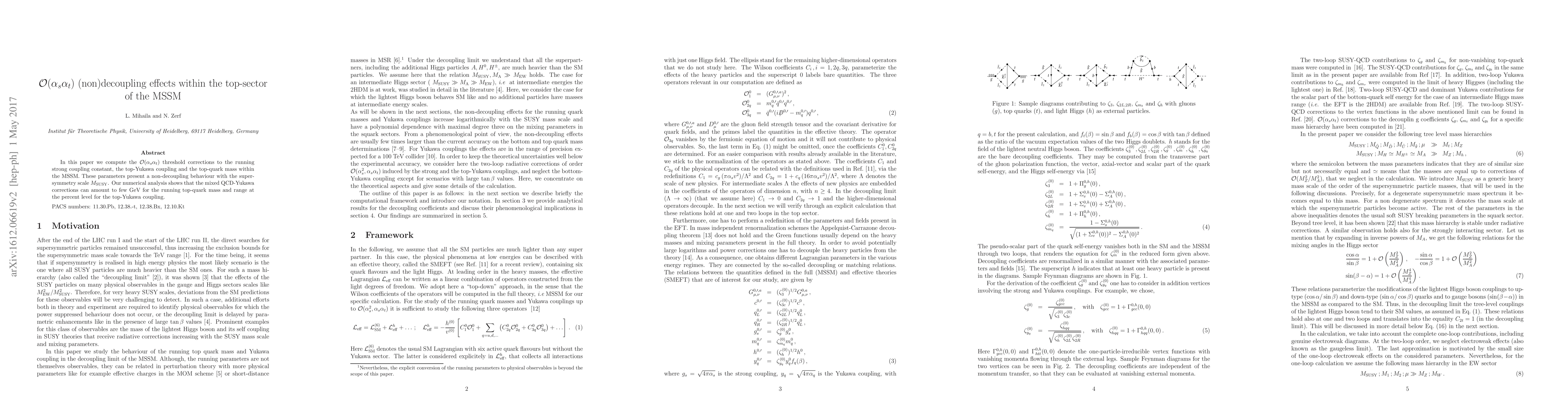 This paper calculates small corrections to top-sector parameters in supersymmetry theory, showing that QCD-Yukawa interactions can affect top mass and coupling strengths significantly.