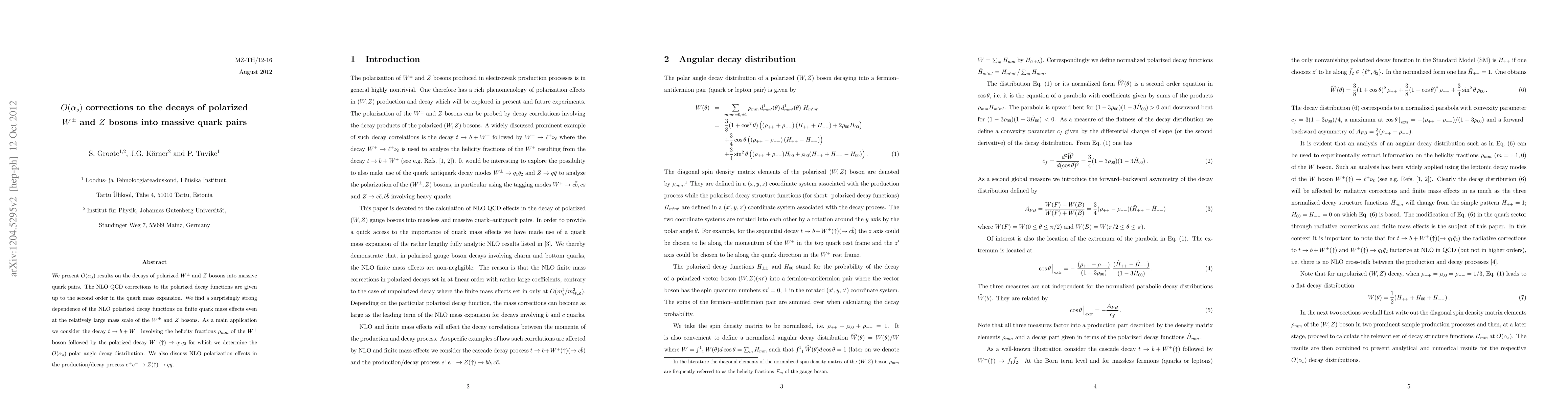 We present O(\alpha_s) results on the decays of polarized W^+- and Z bosons into massive quark pairs. The NLO QCD corrections to the polarized decay functions are given up to the second order in the quark mass expansion. We find a surprisingly strong dependence of the NLO polarized decay functions on finite quark mass effects even at the relatively large mass scale of the W^+- and Z bosons. As a main application we consider the decay t -> b + W^+ involving the helicity fractions \rho_{mm} of the W^+ boson followed by the polarized decay W^+(\uparrow) -> q_1 qbar_2 for which we determine the O(\alpha_s) polar angle decay distribution. We also discuss NLO polarization effects in the production/decay process e^+e^- -> Z(\uparrow) -> q qbar.