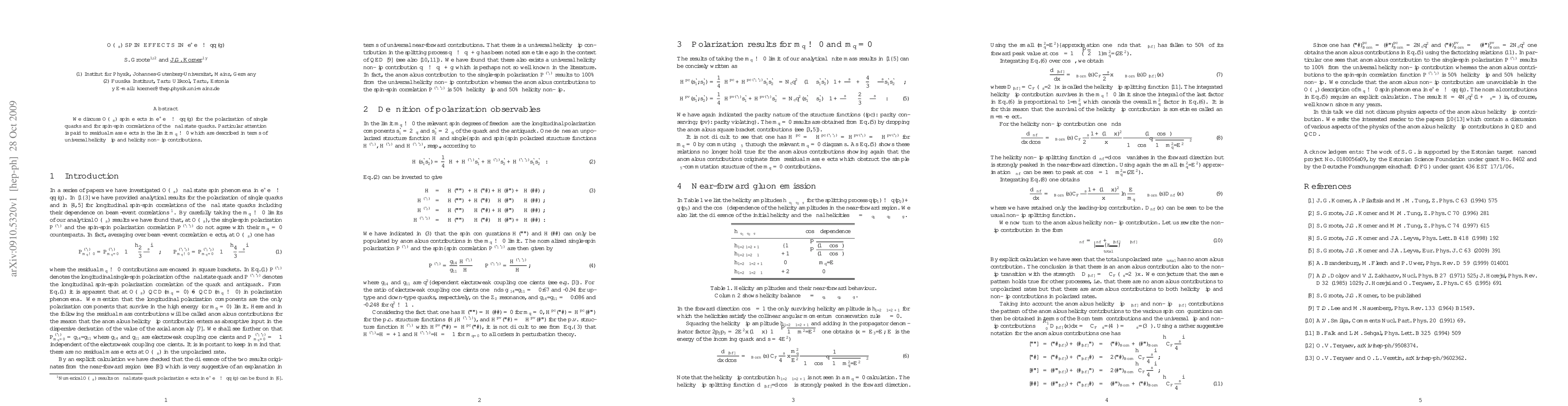 This paper explores O(alpha_s) spin effects in electron-positron collisions, focusing on quark polarization and spin-spin correlations, with a particular emphasis on residual mass effects.