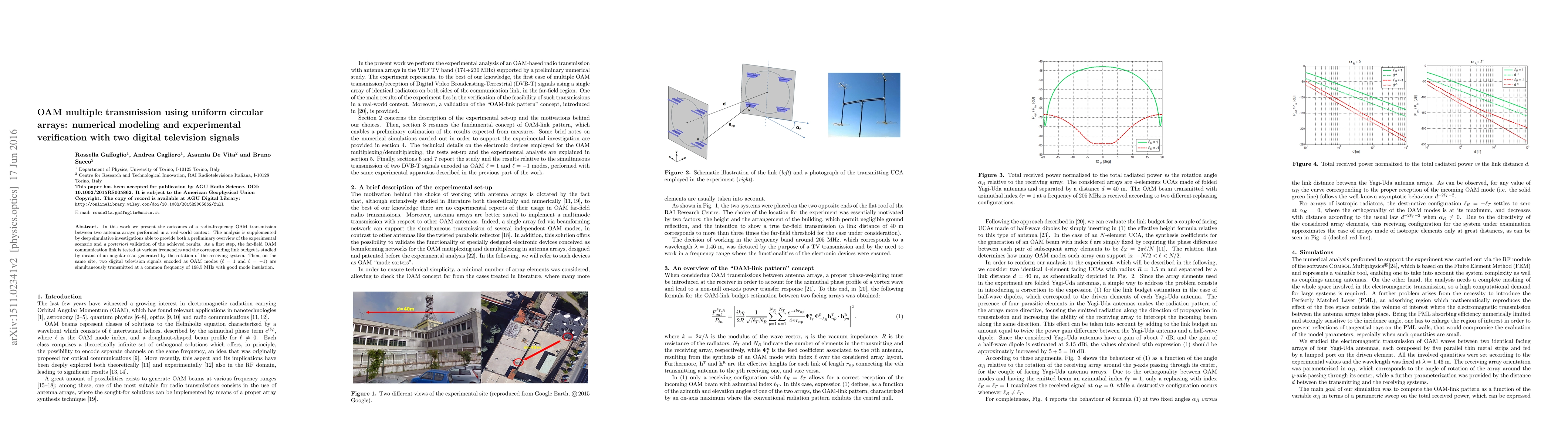 Researchers successfully transmitted two digital television signals encoded with OAM modes in a real-world setting, demonstrating feasibility of OAM multiple transmission using uniform circular arrays.