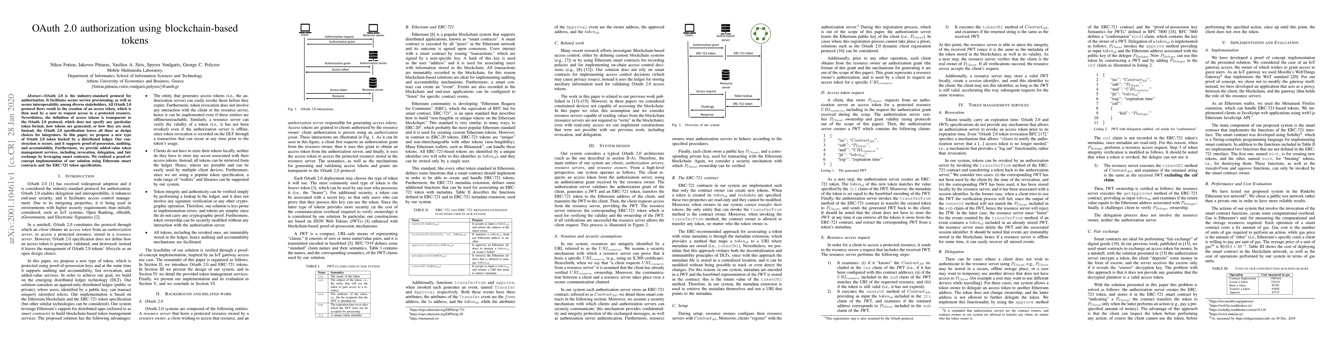 This paper proposes a blockchain-based token for OAuth 2.0 authorization, leveraging Ethereum smart contracts and ERC-721 to provide secure, auditable, and accountable tokens with added management features like revocation and delegation.