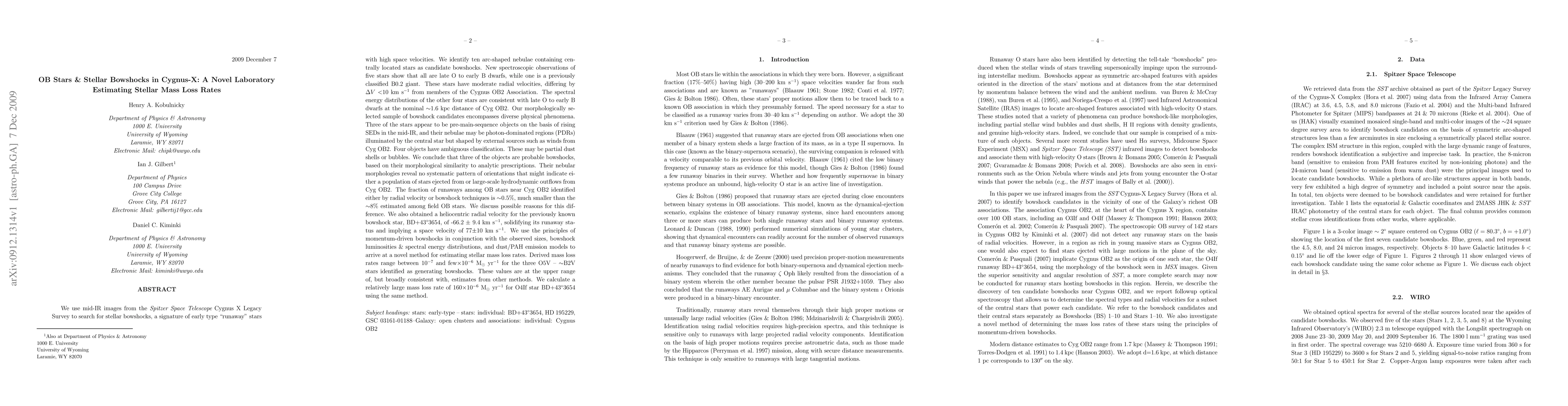 This paper identifies stellar bowshocks in Cygnus-X using Spitzer mid-IR images, revealing ten arc-shaped nebulae indicative of high-speed "runaway" stars. Spectroscopic observations confirm these stars are late O to early B dwarfs, with three likely pre-main-sequence objects. The study proposes a novel method for estimating stellar mass loss rates based on bowshock morphology, yielding rates consistent with other estimates for the identified stars.