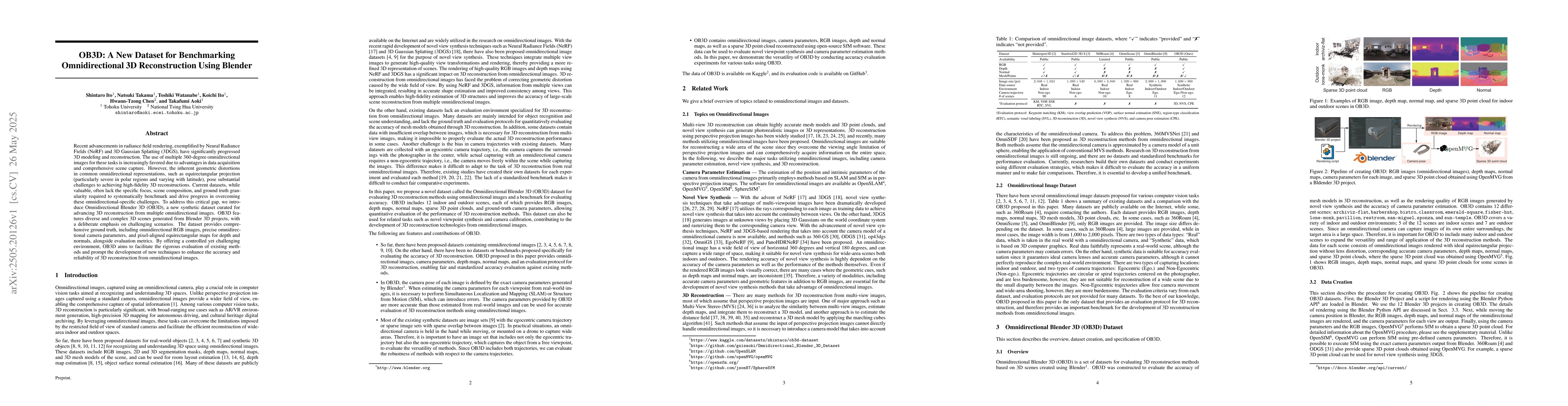 The research introduces OB3D, a synthetic dataset for benchmarking 3D reconstruction from multiple omnidirectional images. It addresses the lack of specific datasets for this purpose, offering diverse complex 3D scenes with comprehensive ground truth, aiming to rigorously evaluate and advance methods in this field.