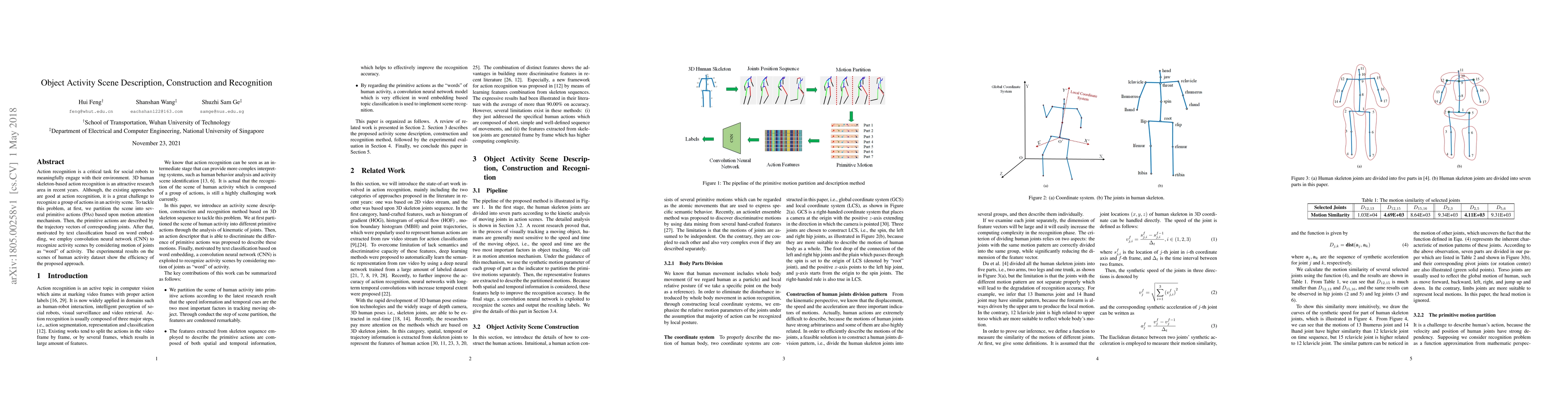 This paper proposes a novel method for recognizing group actions in activity scenes using 3D human skeleton data. It partitions the scene into primitive actions based on motion attention, describes them with joint trajectory vectors, and employs CNNs to classify activities by treating joint motions as "words." Experimental results demonstrate the efficiency of the approach.
