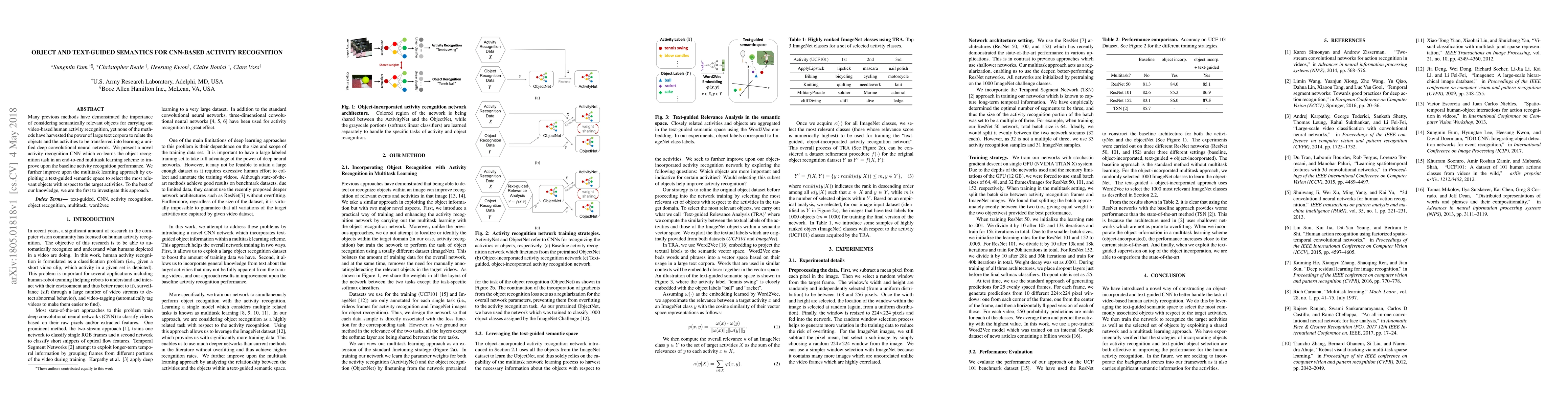 This paper introduces a CNN-based method for activity recognition that jointly learns object and activity recognition through multitask learning, enhancing performance by leveraging large text corpora to define a text-guided semantic space for selecting relevant objects. This approach aims to improve activity recognition by integrating semantic information from both objects and textual descriptions.