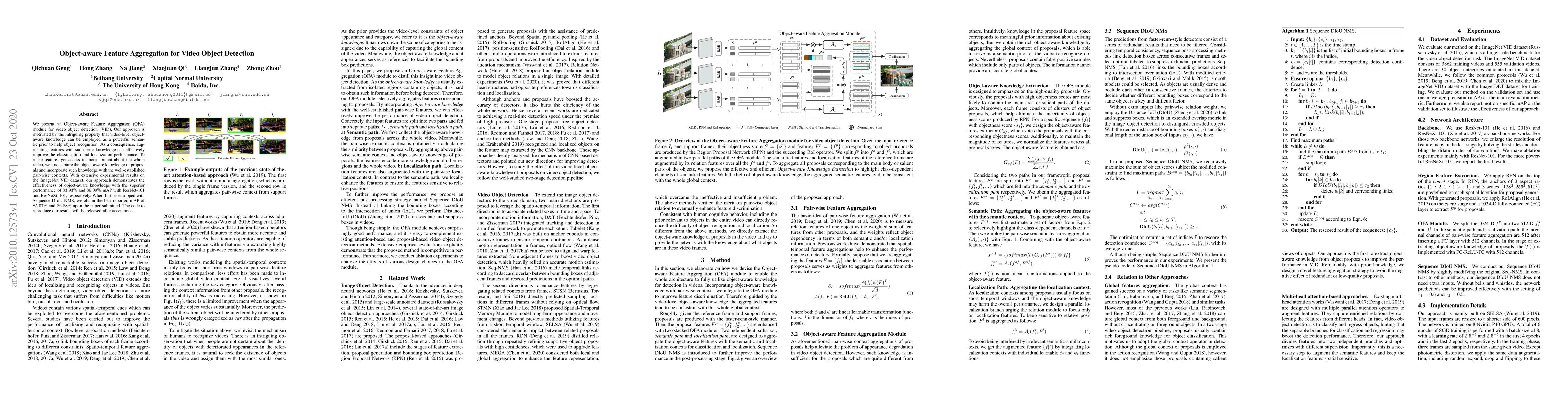 This paper introduces an Object-aware Feature Aggregation (OFA) module to enhance video object detection by leveraging video-level object-aware knowledge as a semantic prior. The approach achieves superior performance with mAP scores of 83.93% and 86.09% on the ImageNet VID dataset using ResNet-101 and ResNeXt-101, respectively.
