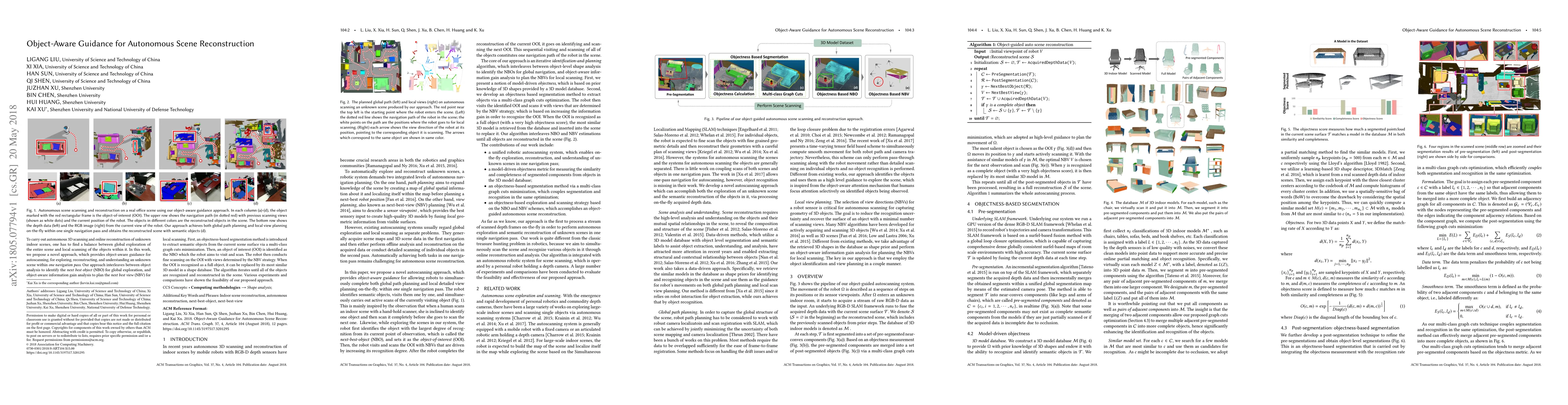 Researchers propose a novel approach to guide autonomous robots in reconstructing unknown indoor scenes within one navigation pass. Their method balances global exploration with local scanning of objects, enabling efficient scene reconstruction.