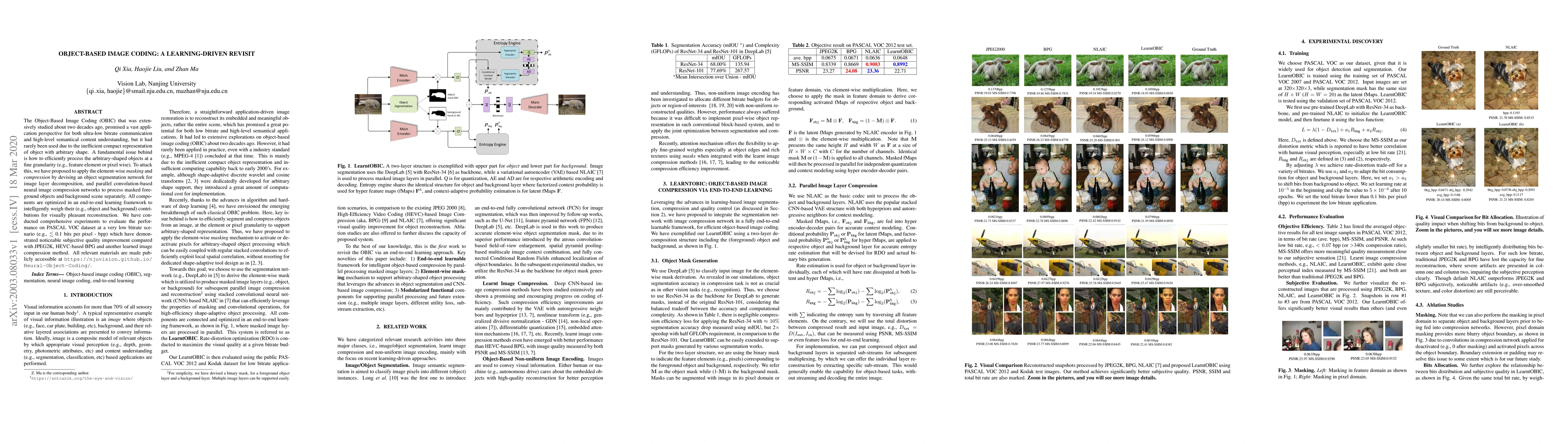 The Object-Based Image Coding (OBIC) that was extensively studied about two decades ago, promised a vast application perspective for both ultra-low bitrate communication and high-level semantical content understanding, but it had rarely been used due to the inefficient compact representation of object with arbitrary shape. A fundamental issue behind is how to efficiently process the arbitrary-shaped objects at a fine granularity (e.g., feature element or pixel wise). To attack this, we have proposed to apply the element-wise masking and compression by devising an object segmentation network for image layer decomposition, and parallel convolution-based neural image compression networks to process masked foreground objects and background scene separately. All components are optimized in an end-to-end learning framework to intelligently weigh their (e.g., object and background) contributions for visually pleasant reconstruction. We have conducted comprehensive experiments to evaluate the performance on PASCAL VOC dataset at a very low bitrate scenario (e.g., $\lesssim$0.1 bits per pixel - bpp) which have demonstrated noticeable subjective quality improvement compared with JPEG2K, HEVC-based BPG and another learned image compression method. All relevant materials are made publicly accessible at https://njuvision.github.io/Neural-Object-Coding/.