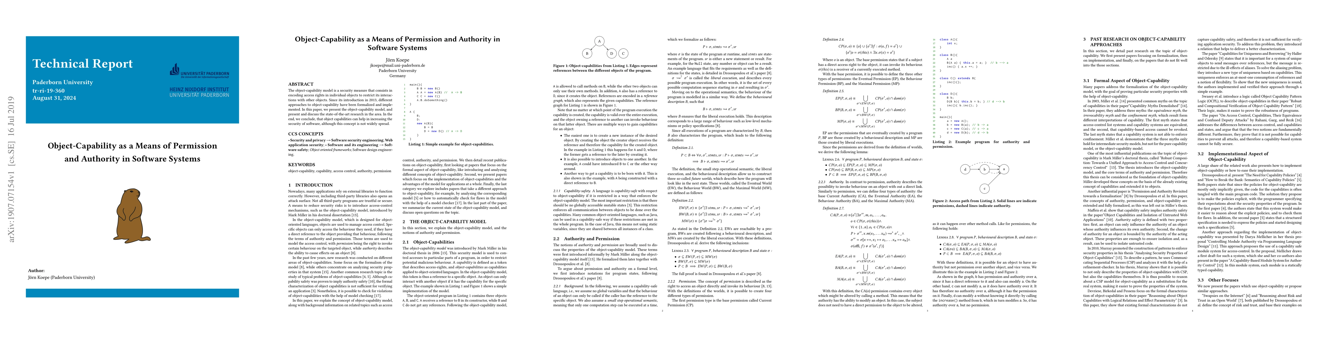 The object-capability model is a security measure that consists in encoding access rights in individual objects to restrict its interactions with other objects. Since its introduction in 2013, different approaches to object-capability have been formalized and implemented. In this paper, we present the object-capability model, and present and discuss the state-of-the-art research in the area. In the end, we conclude, that object capabilities can help in increasing the security of software, although this concept is not widely spread.