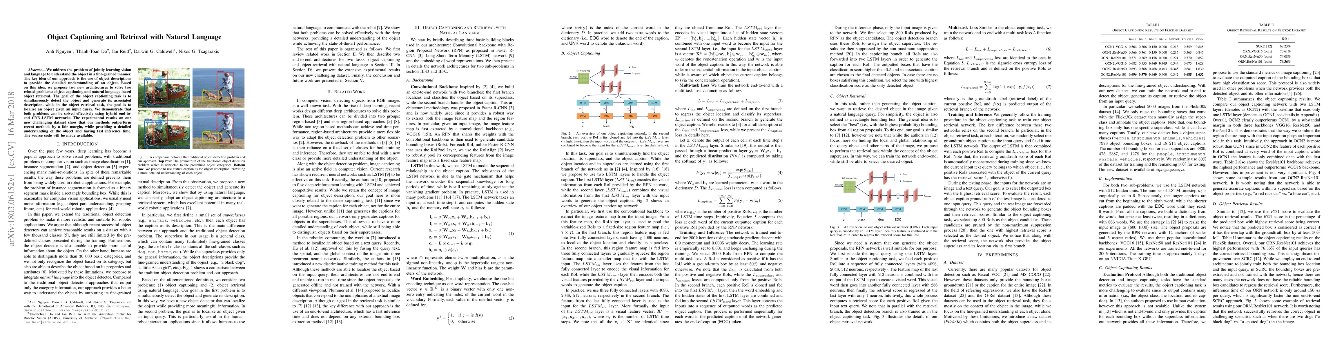 This paper proposes two new architectures using hybrid CNN-LSTM networks for object captioning and natural language-based object retrieval, achieving superior performance on a new dataset and demonstrating detailed object understanding with fast inference. Source code will be publicly available.