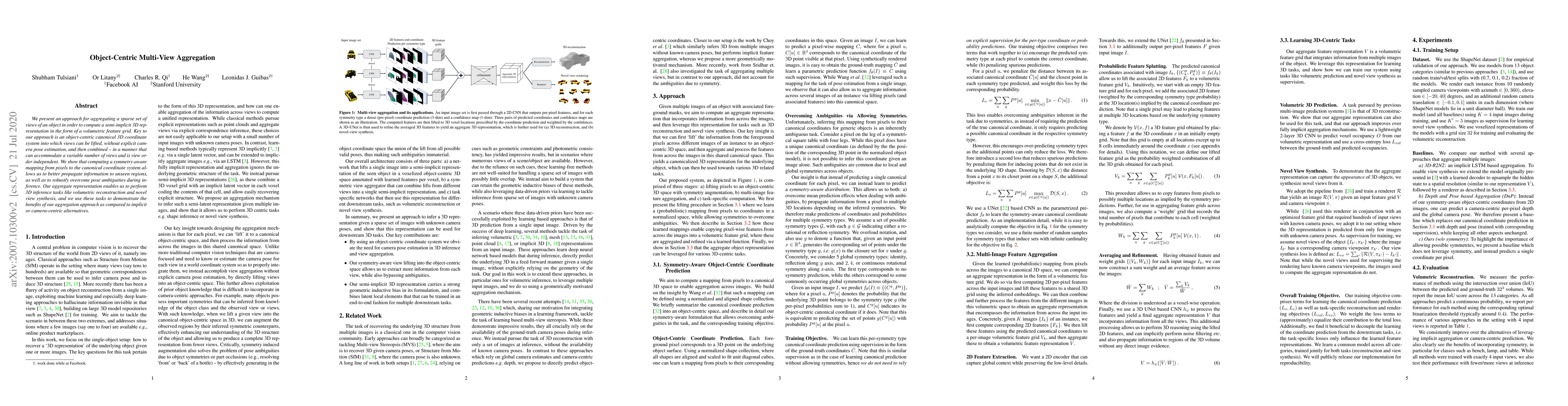 We present an approach for aggregating a sparse set of views of an object in order to compute a semi-implicit 3D representation in the form of a volumetric feature grid. Key to our approach is an object-centric canonical 3D coordinate system into which views can be lifted, without explicit camera pose estimation, and then combined -- in a manner that can accommodate a variable number of views and is view order independent. We show that computing a symmetry-aware mapping from pixels to the canonical coordinate system allows us to better propagate information to unseen regions, as well as to robustly overcome pose ambiguities during inference. Our aggregate representation enables us to perform 3D inference tasks like volumetric reconstruction and novel view synthesis, and we use these tasks to demonstrate the benefits of our aggregation approach as compared to implicit or camera-centric alternatives.