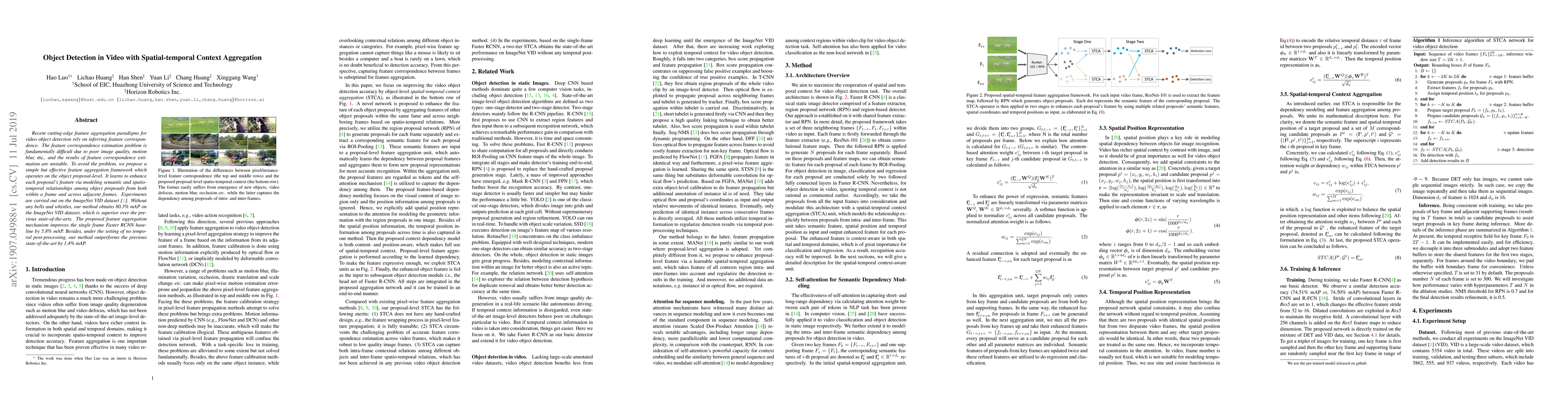 This paper proposes a simple yet effective feature aggregation framework for video object detection that enhances object proposal features by modeling semantic and spatio-temporal relationships within and across frames. The method achieves superior results on the ImageNet VID dataset, surpassing previous state-of-the-art methods.