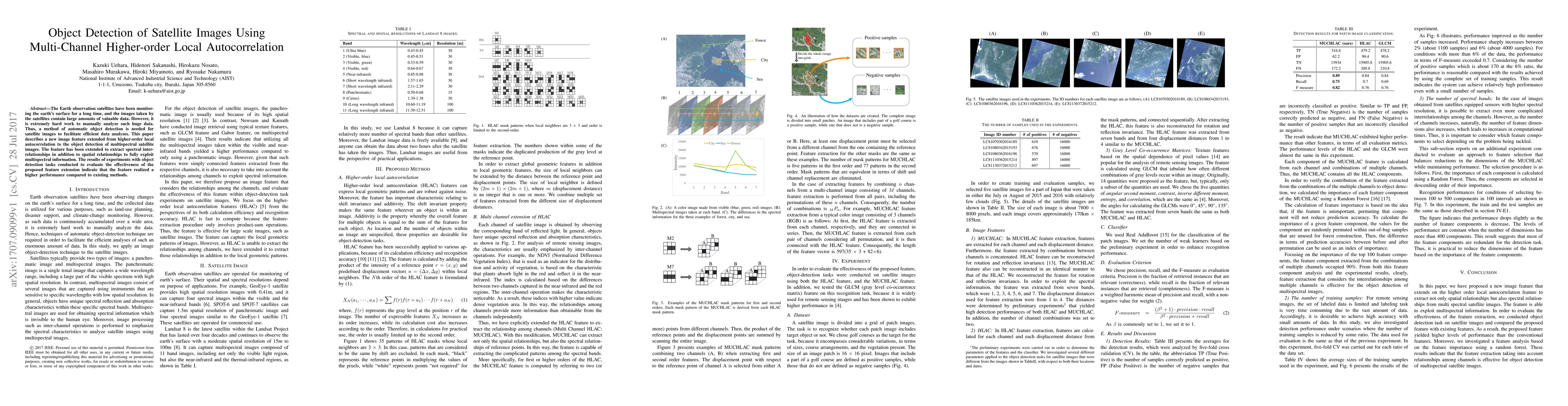 A new image feature using higher-order local autocorrelation improves object detection in satellite images by exploiting multispectral information, achieving higher performance compared to existing methods.