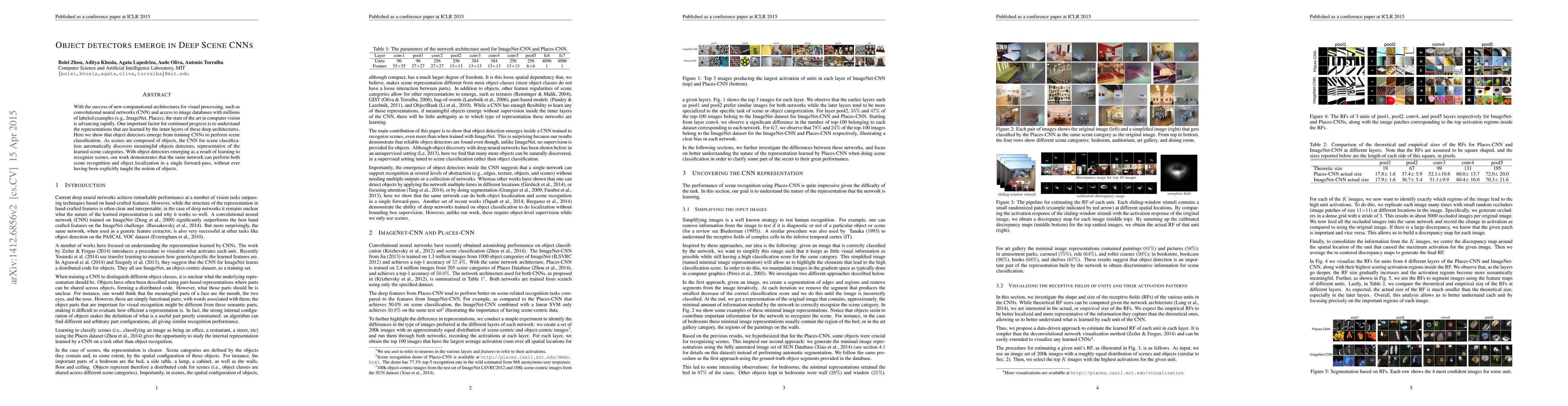 This research highlights how convolutional neural networks (CNNs) trained for scene classification naturally develop object detectors, showcasing the emergence of dual capabilities in a single network architecture. This finding suggests that deep learning models can simultaneously perform scene recognition and object localization without explicit object training.