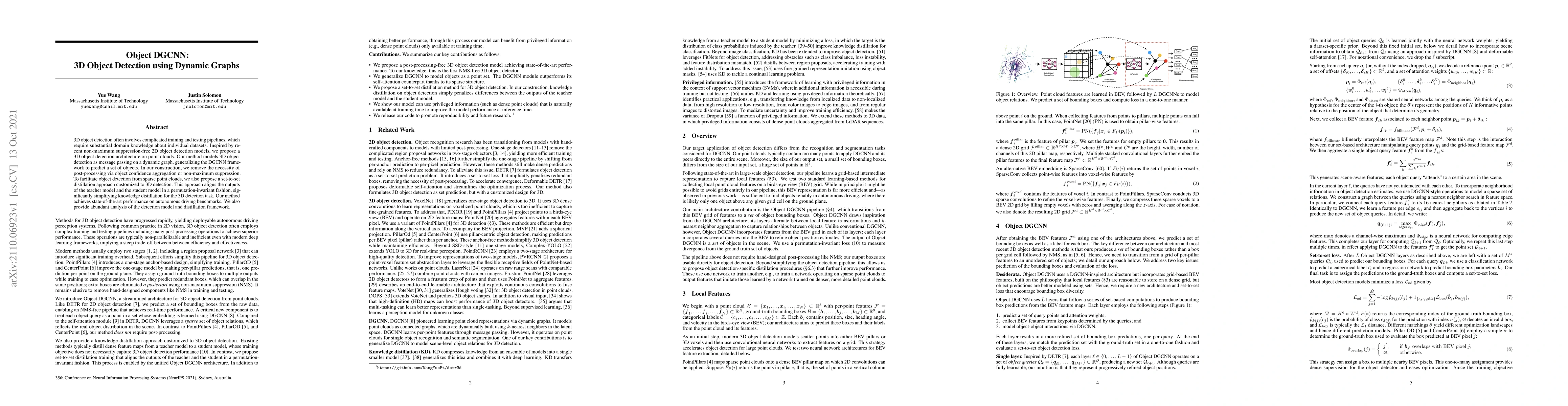 The paper proposes a novel DGCNN-based architecture for 3D object detection in point clouds, utilizing dynamic graphs to eliminate the need for post-processing steps. It introduces a set-to-set distillation method tailored for 3D detection, achieving state-of-the-art results on autonomous driving benchmarks.