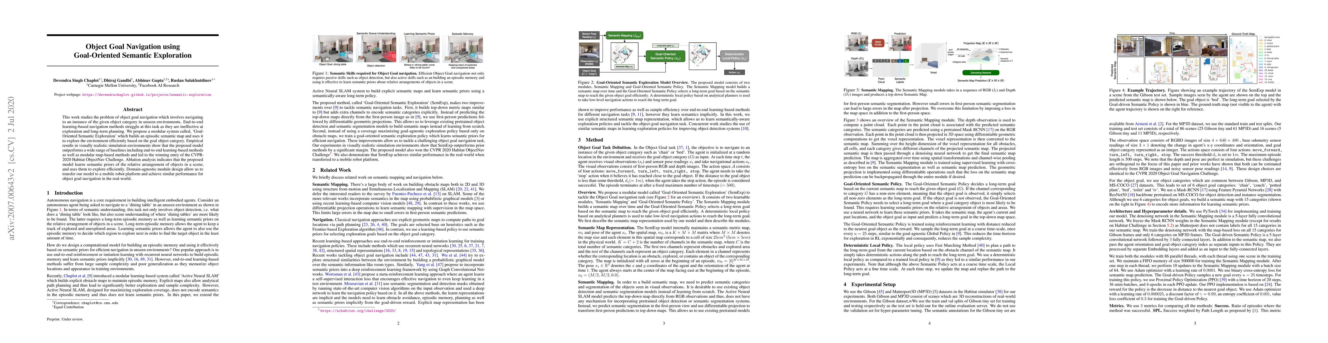 This paper proposes a modular system called `Goal-Oriented Semantic Exploration' for object goal navigation in unseen environments, which outperforms baselines by efficiently exploring using an episodic semantic map. The model's domain-agnostic design allows successful transfer to a mobile robot for real-world navigation.
