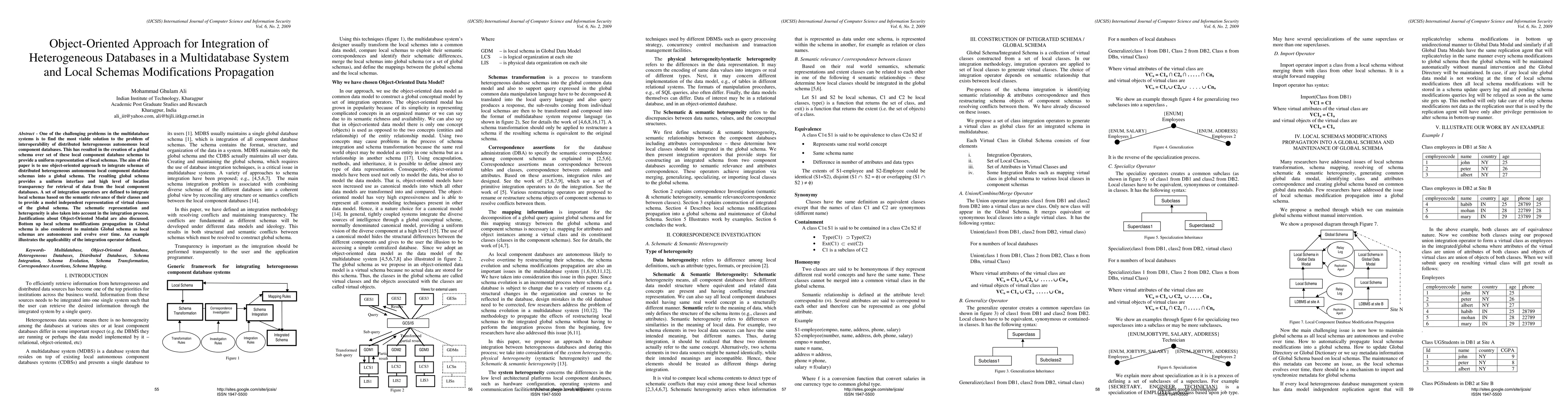 This paper proposes an object-oriented approach to integrate heterogeneous local databases into a global schema in a multidatabase system, ensuring uniform data representation and high location transparency. It also addresses the propagation of local schema modifications to the global schema to maintain consistency as local schemas evolve.