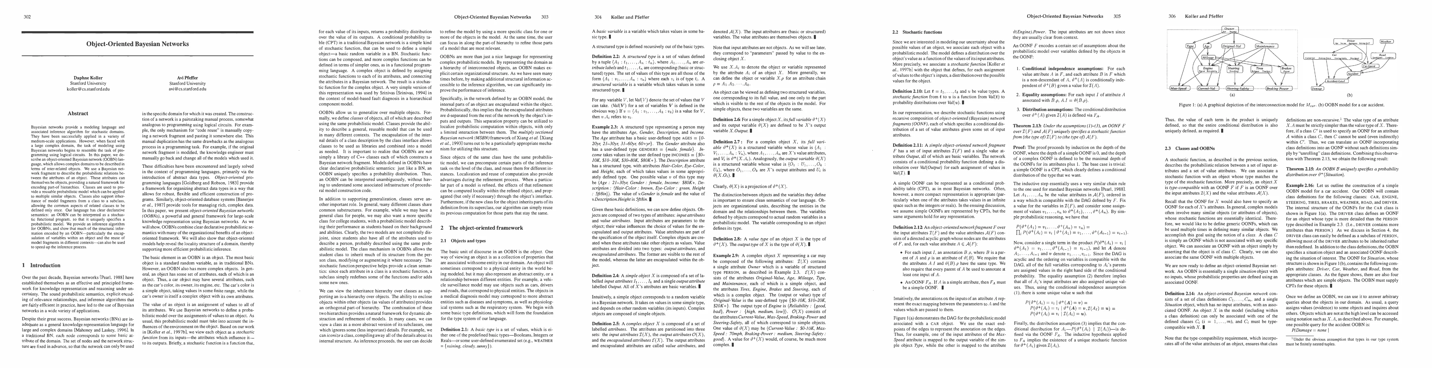 This paper introduces an object-oriented Bayesian network language that allows complex domains to be modeled using inter-related objects, enabling reusable probabilistic models and faster inference.