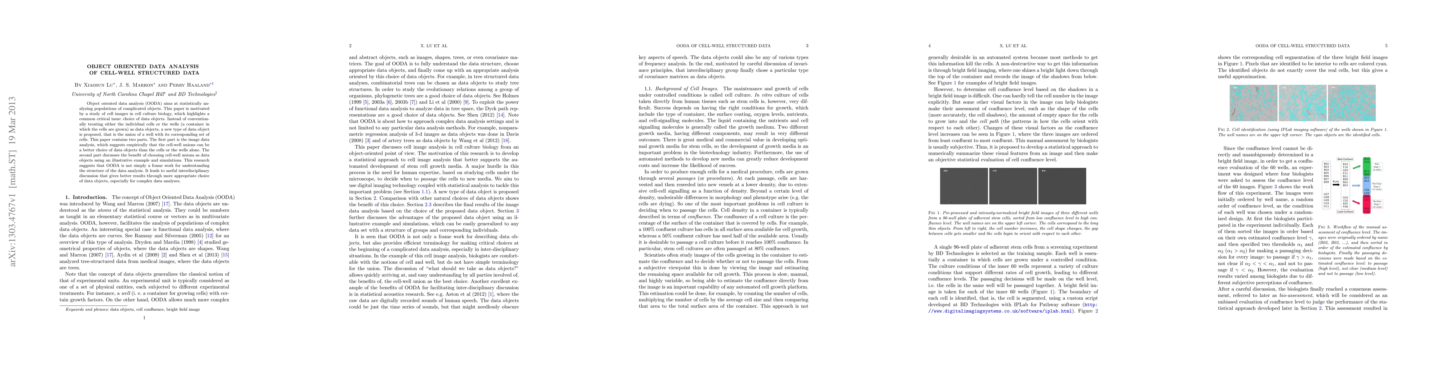 This paper proposes a new approach to data analysis in cell biology by treating cell-well unions as data objects, leading to more accurate results for complex analyses.