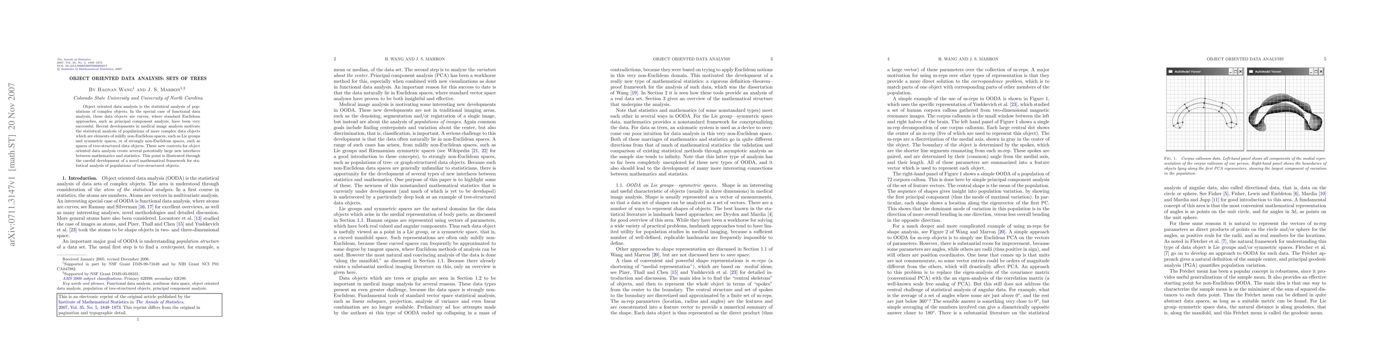 This paper develops a novel mathematical framework for the statistical analysis of populations of tree-structured objects, addressing the limitations of traditional Euclidean methods in complex data contexts like medical image analysis. The framework aims to create new interfaces between mathematics and statistics for analyzing non-Euclidean data structures.
