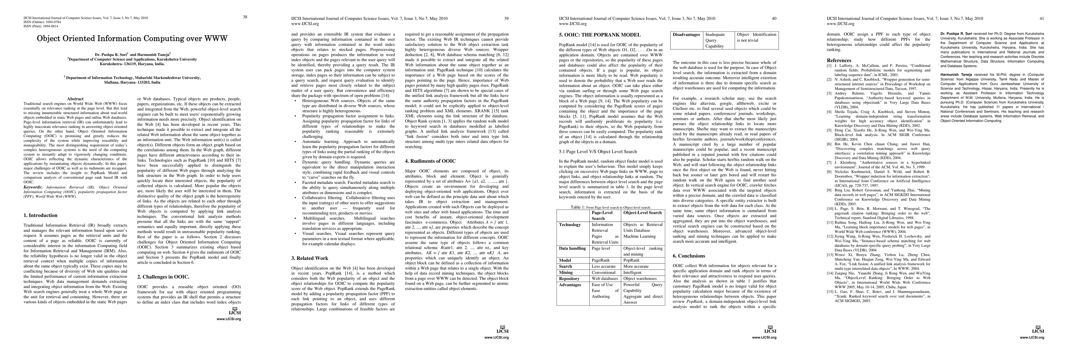 This paper discusses the limitations of traditional page-level search engines in retrieving structured information about real-world objects and proposes Object Oriented Information Computing (OOIC) as a solution. It reviews the challenges of OOIC and compares it with conventional page-level information retrieval, highlighting OOIC's benefits in system adaptability and dynamic object instantiation.