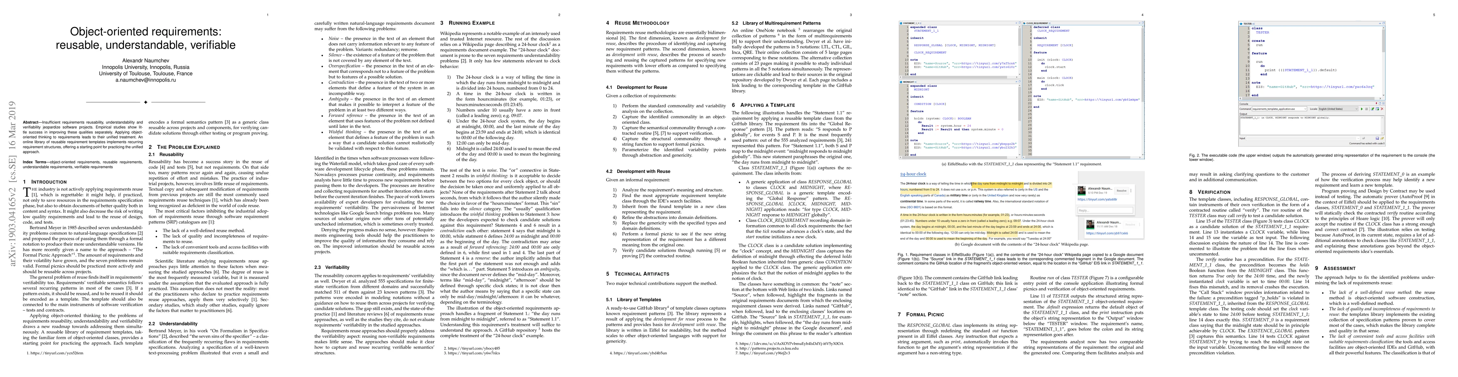This paper discusses how insufficient reusability, understandability, and verifiability of software requirements jeopardize projects. It proposes an object-oriented approach to unify these qualities and presents an online library of reusable requirement templates to implement this unified treatment.