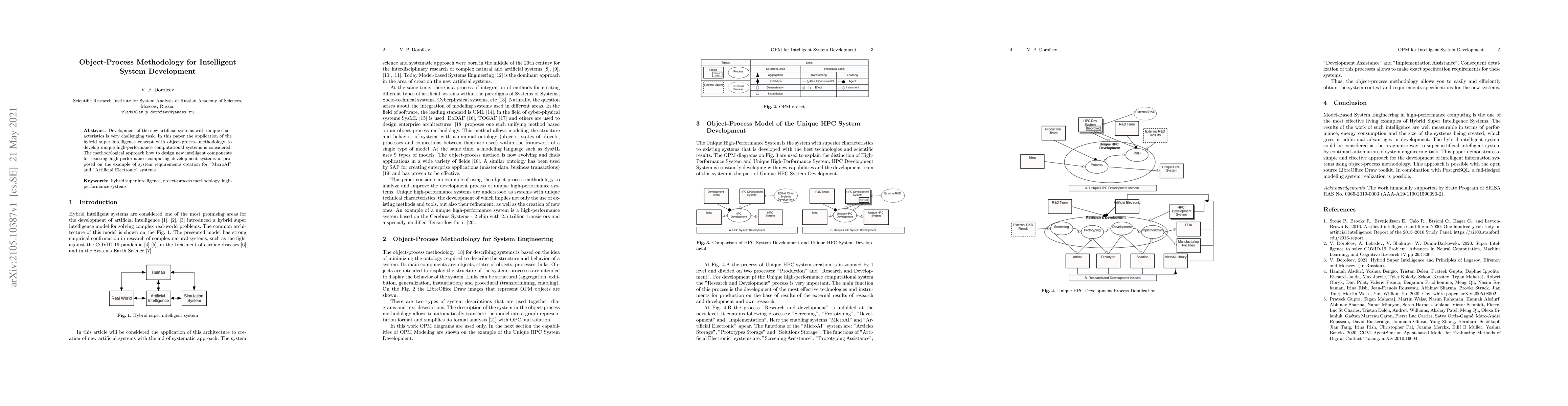 Development of the new artificial systems with unique characteristics is very challenging task. In this paper the application of the hybrid super intelligence concept with object-process methodology to develop unique high-performance computational systems is considered. The methodological approach how to design new intelligent components for existing high-performance computing development systems is proposed on the example of system requirements creation for "MicroAI" and "Artificial Electronic" systems.