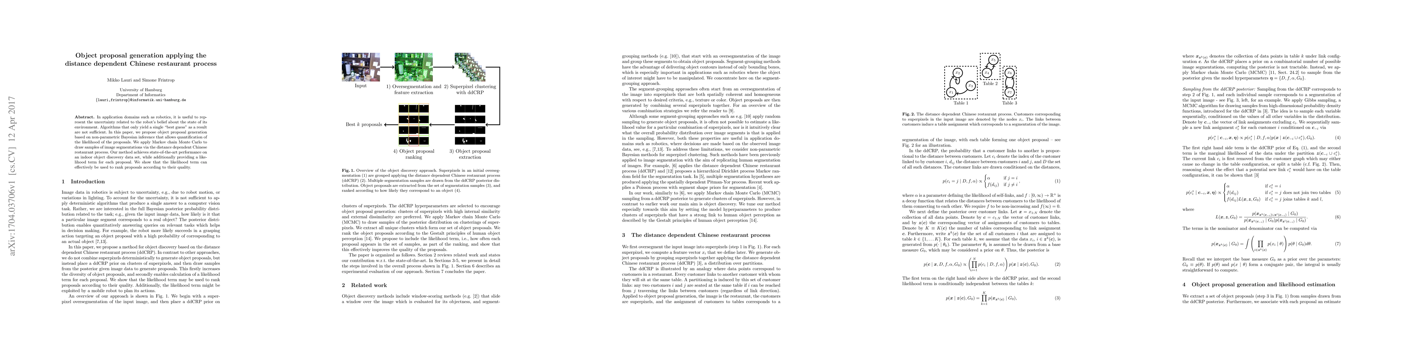 This paper proposes a method for object proposal generation using non-parametric Bayesian inference, achieving state-of-the-art performance on an indoor object discovery dataset while providing a likelihood term to rank proposals.