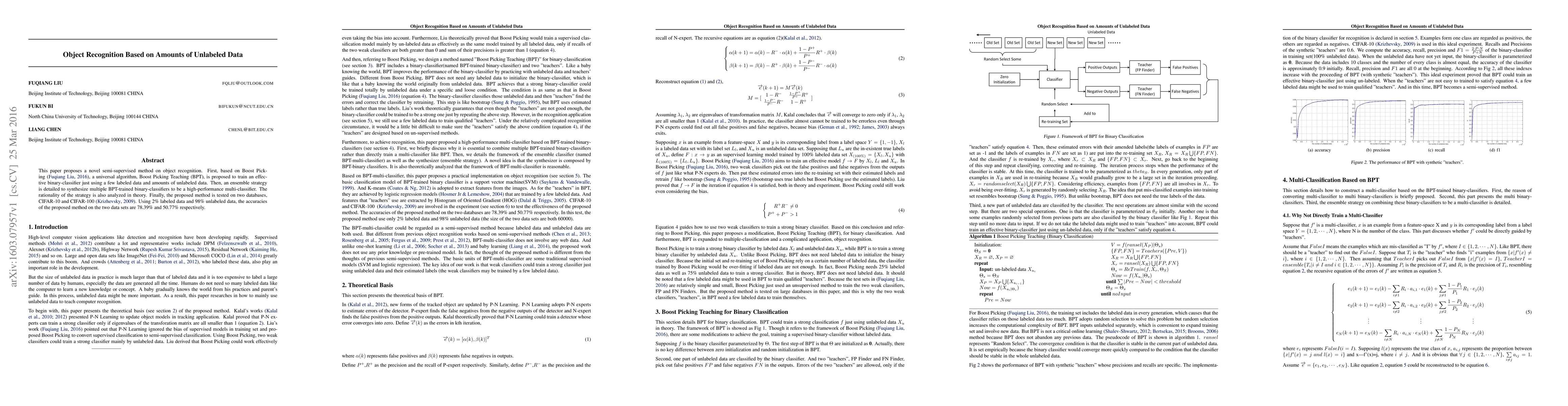 This paper proposes a novel semi-supervised method on object recognition. First, based on Boost Picking, a universal algorithm, Boost Picking Teaching (BPT), is proposed to train an effective binary-classifier just using a few labeled data and amounts of unlabeled data. Then, an ensemble strategy is detailed to synthesize multiple BPT-trained binary-classifiers to be a high-performance multi-classifier. The rationality of the strategy is also analyzed in theory. Finally, the proposed method is tested on two databases, CIFAR-10 and CIFAR-100. Using 2% labeled data and 98% unlabeled data, the accuracies of the proposed method on the two data sets are 78.39% and 50.77% respectively.