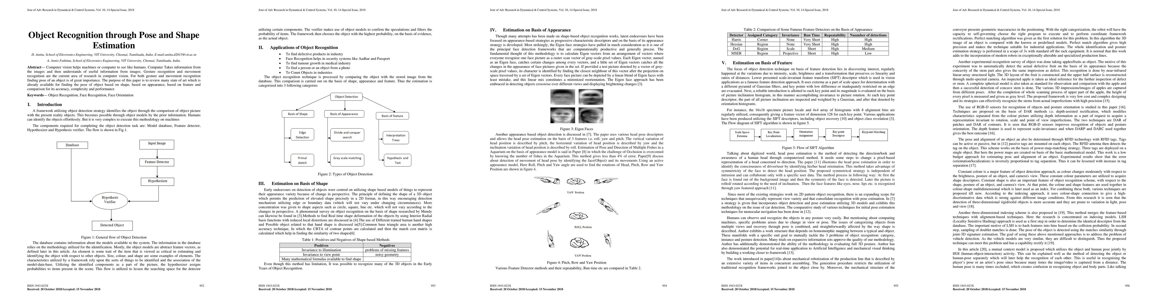 This paper reviews state-of-the-art methods for estimating an object's pose from its shape, appearance, and features, aiming to improve gesture and movement recognition in computer vision. The study highlights the importance of finding an object's pose for accurate recognition.